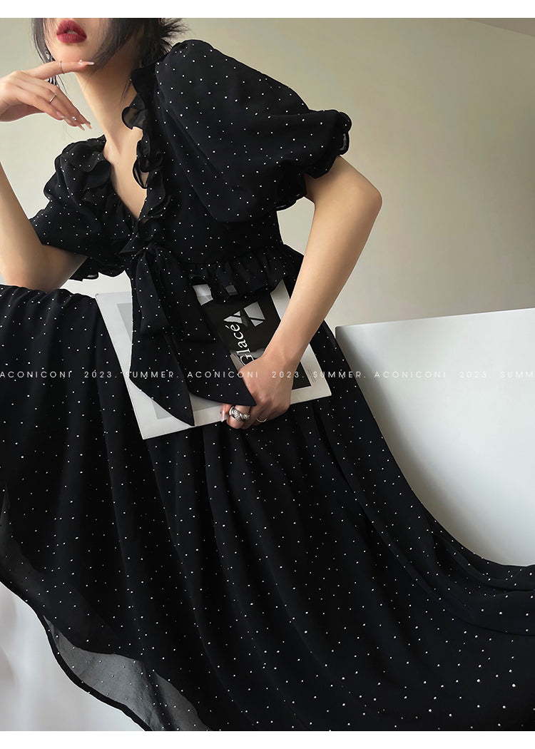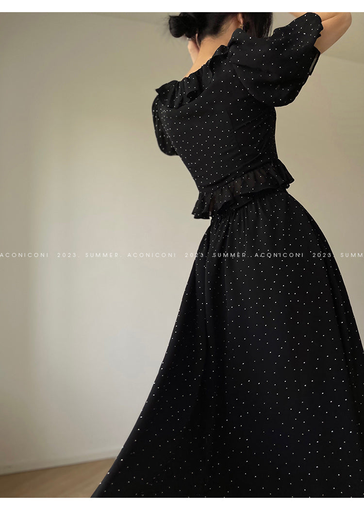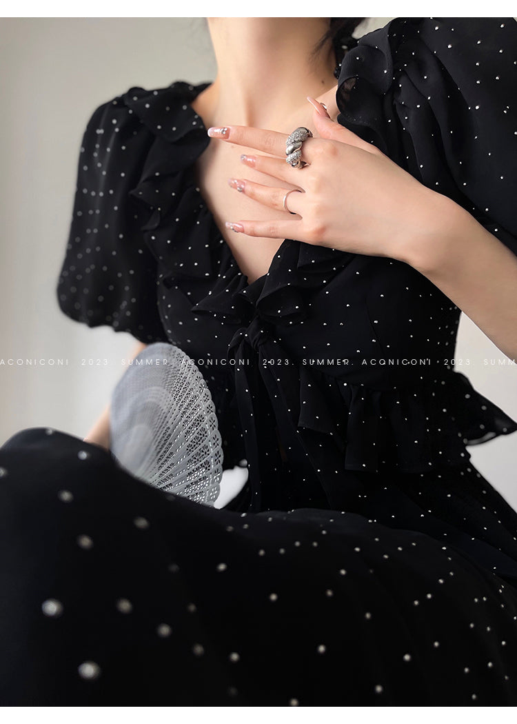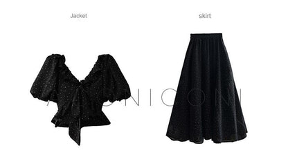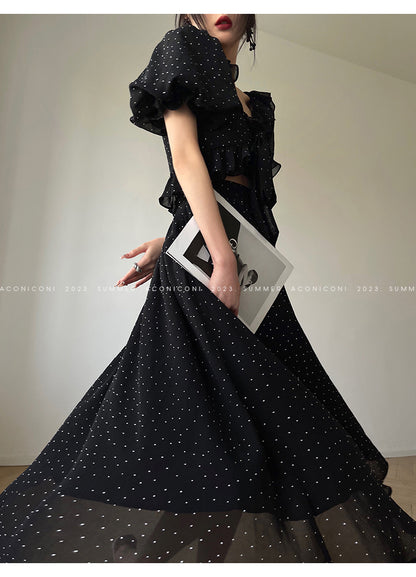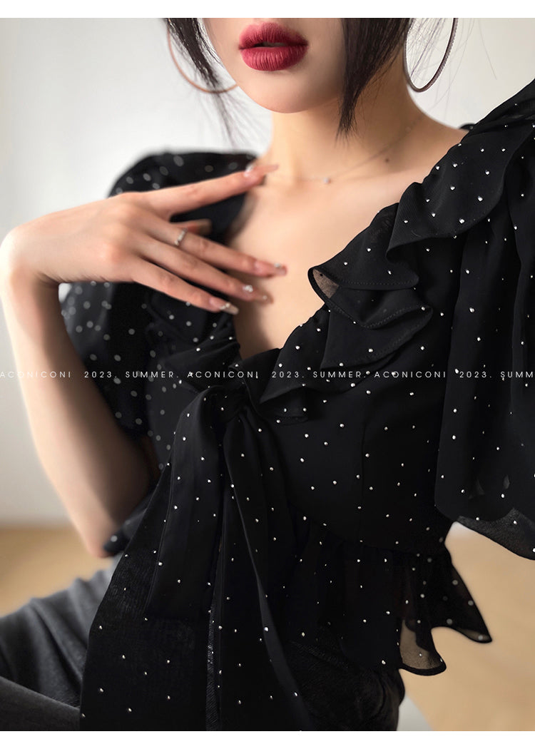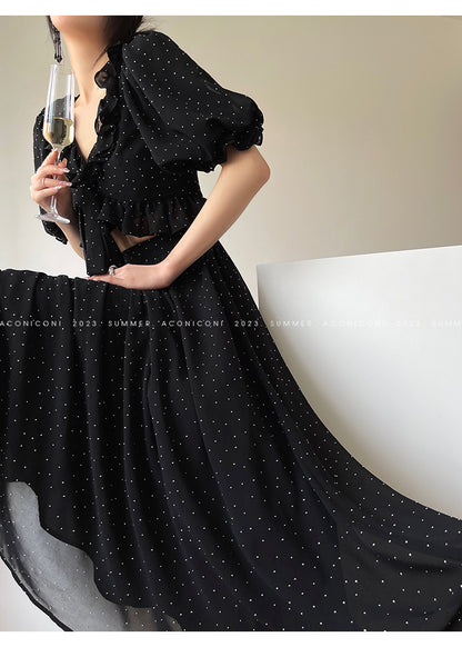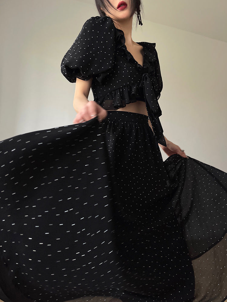 Aconiconi Elegant Polka Dot V-Neck High Waist Wedding Guest skirt top - Hoshino Ryuban