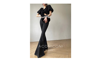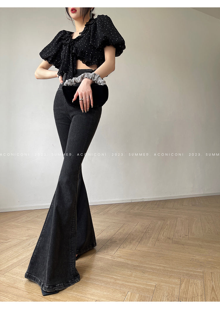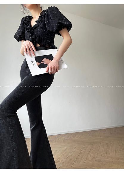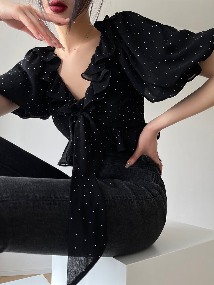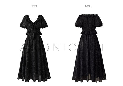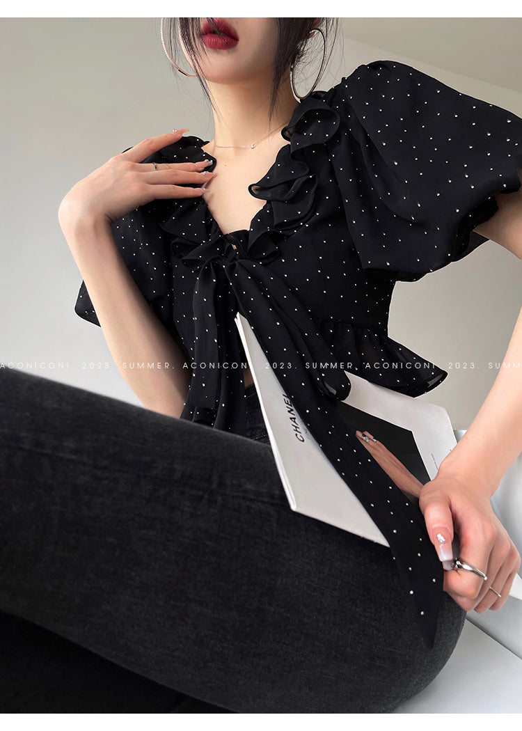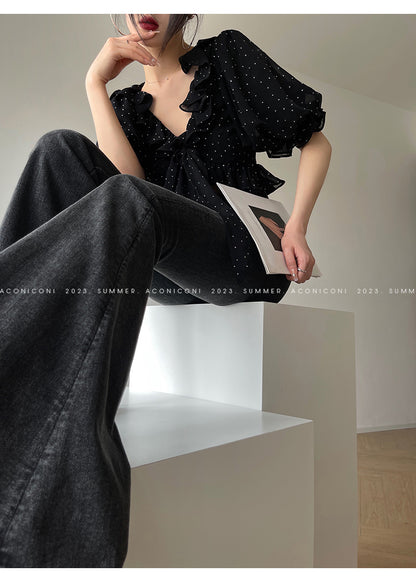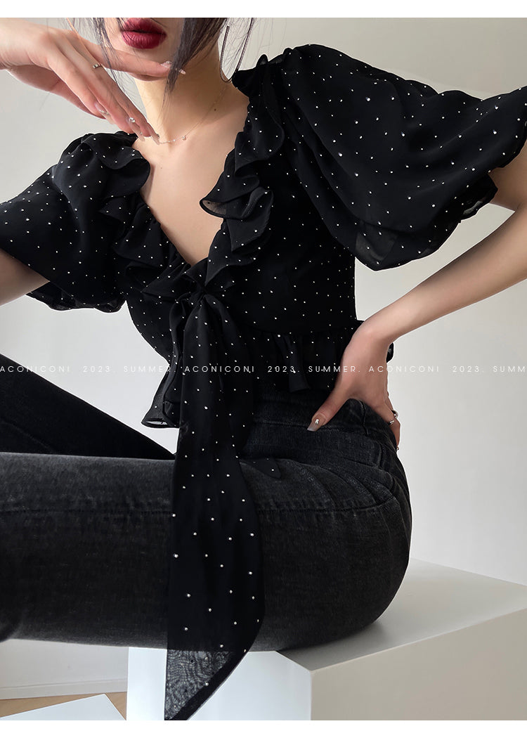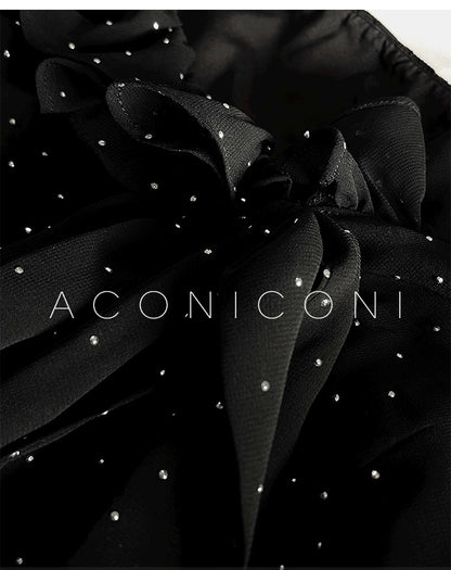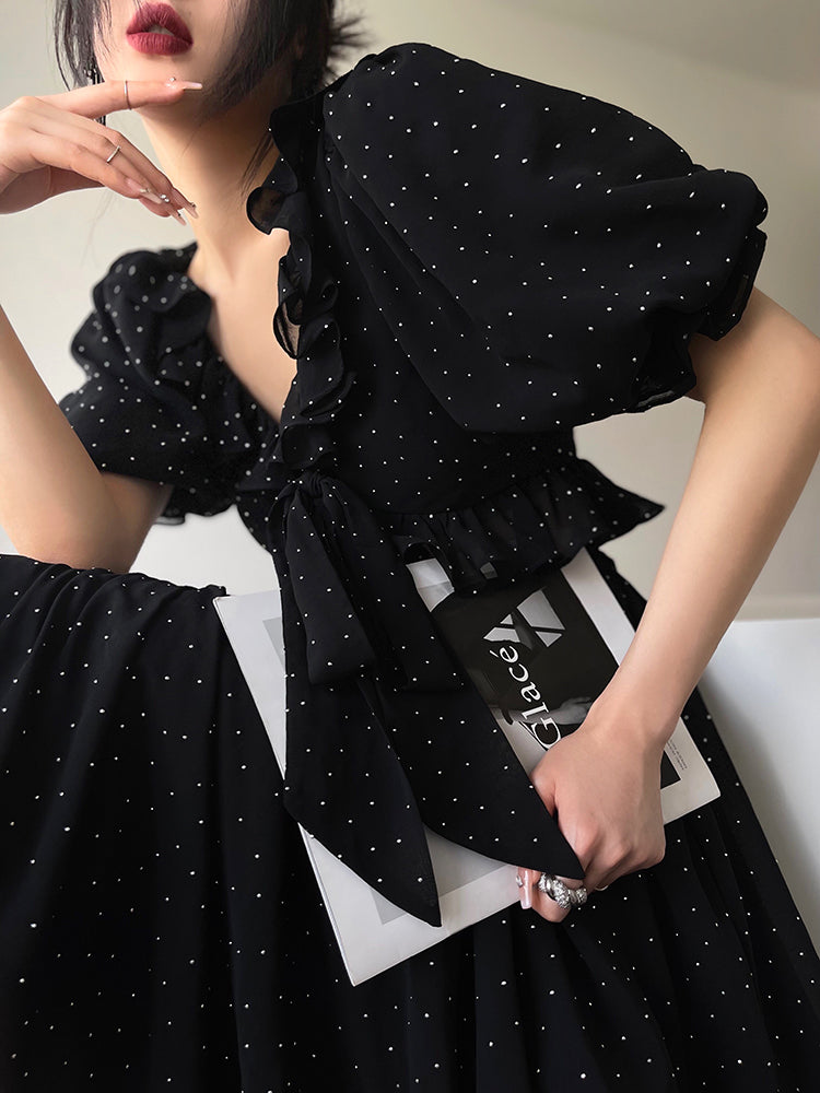 Aconiconi Elegant Polka Dot V-Neck High Waist Wedding Guest skirt top - Hoshino Ryuban