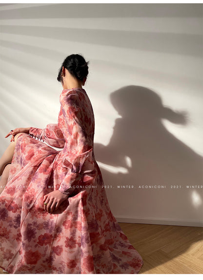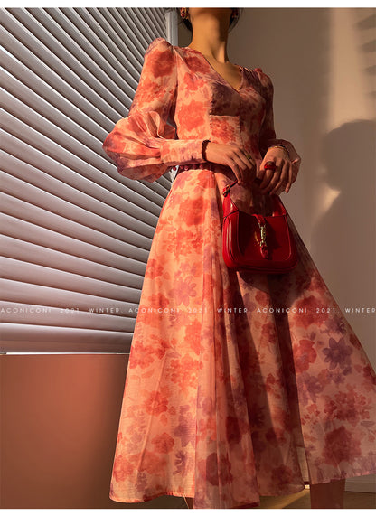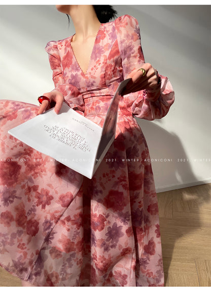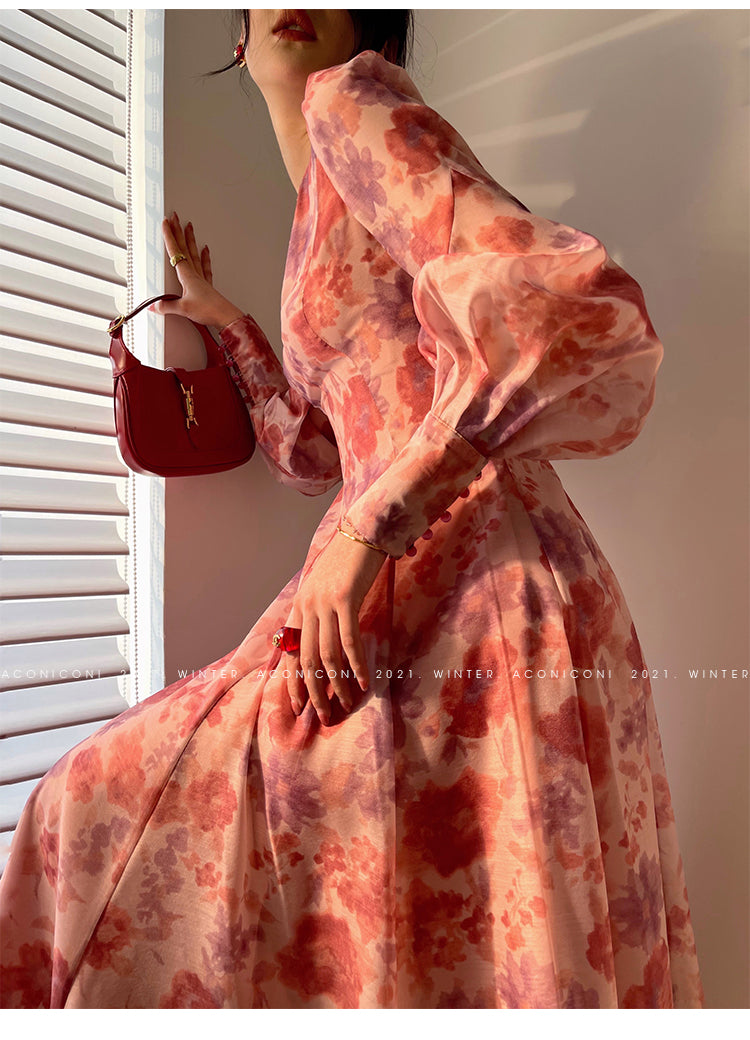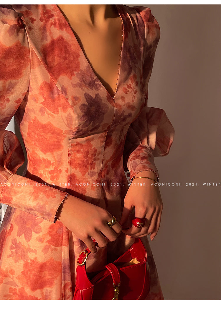 Indulge in pure elegance with Aconiconi's Elegant Purple Floral Print V-Neck Dress. Featuring a chic, high-waist design and flattering shirt sleeves, this dress exudes sophistication and luxury. Let the delicate floral print add a touch of refinement to your wardrobe.