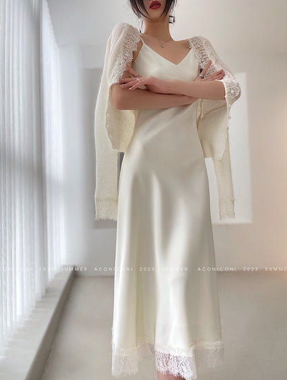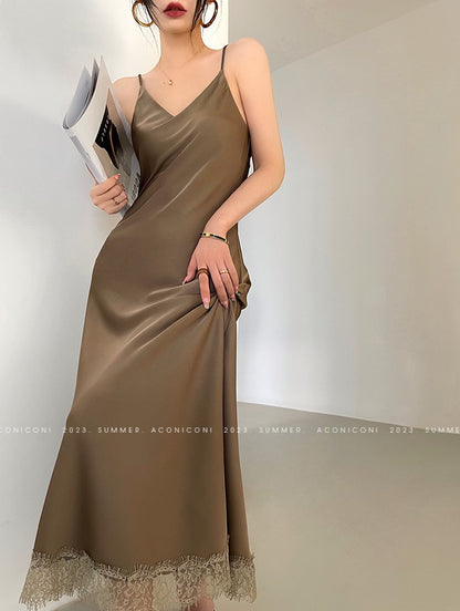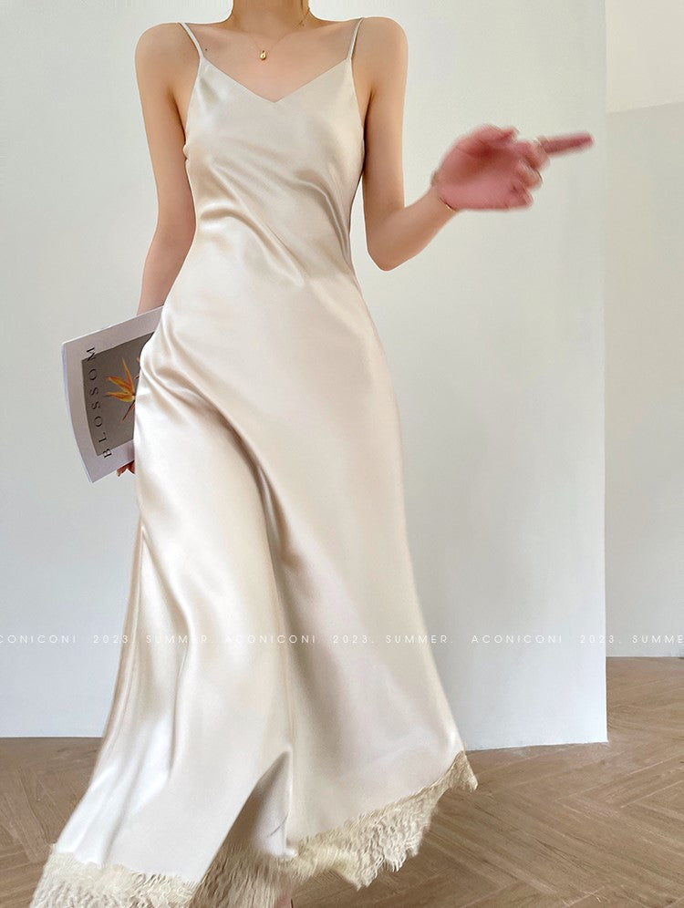 AconiconI Elegant V-Neck Sleeveless High Waist Hip Banquet Dress- Light Dance