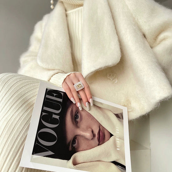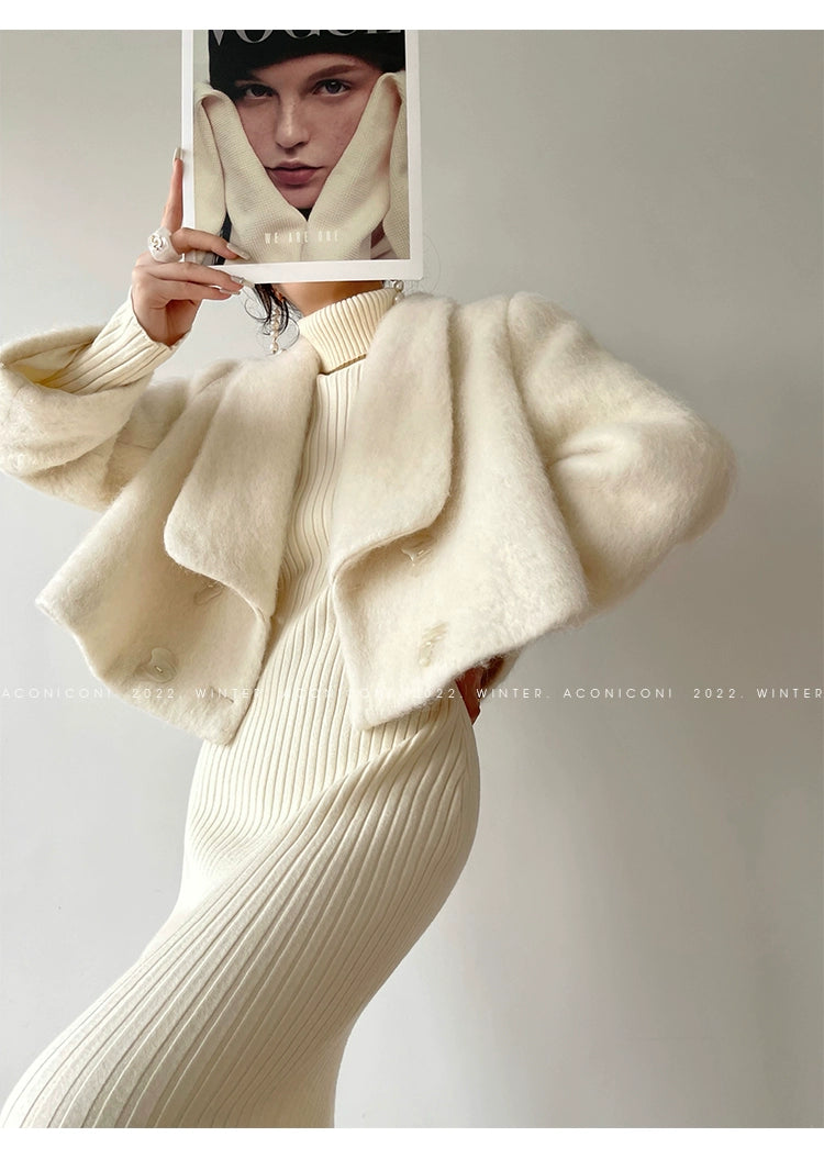 Aconiconi Elegant White Tweed Long Sleeve cropped Winter Coat- Yao Te