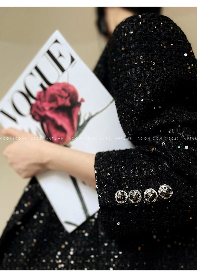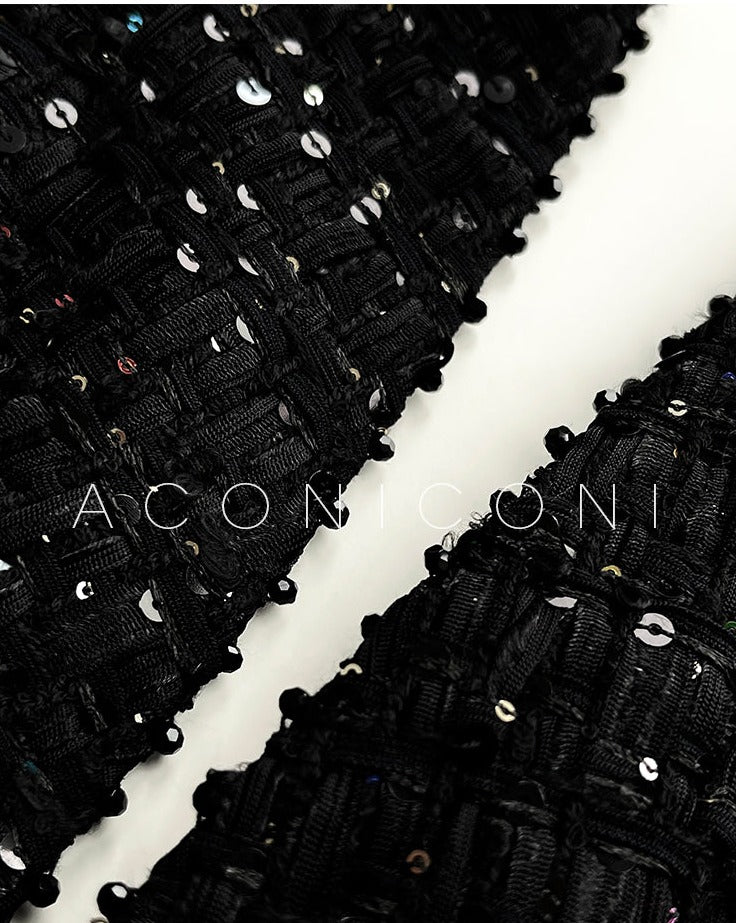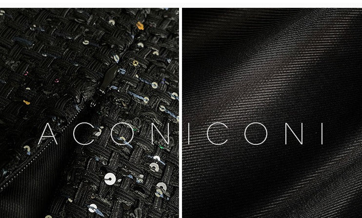 Aconiconi Tweed Sequins Fragrance Dress Skirt Loose Blazer Skirt