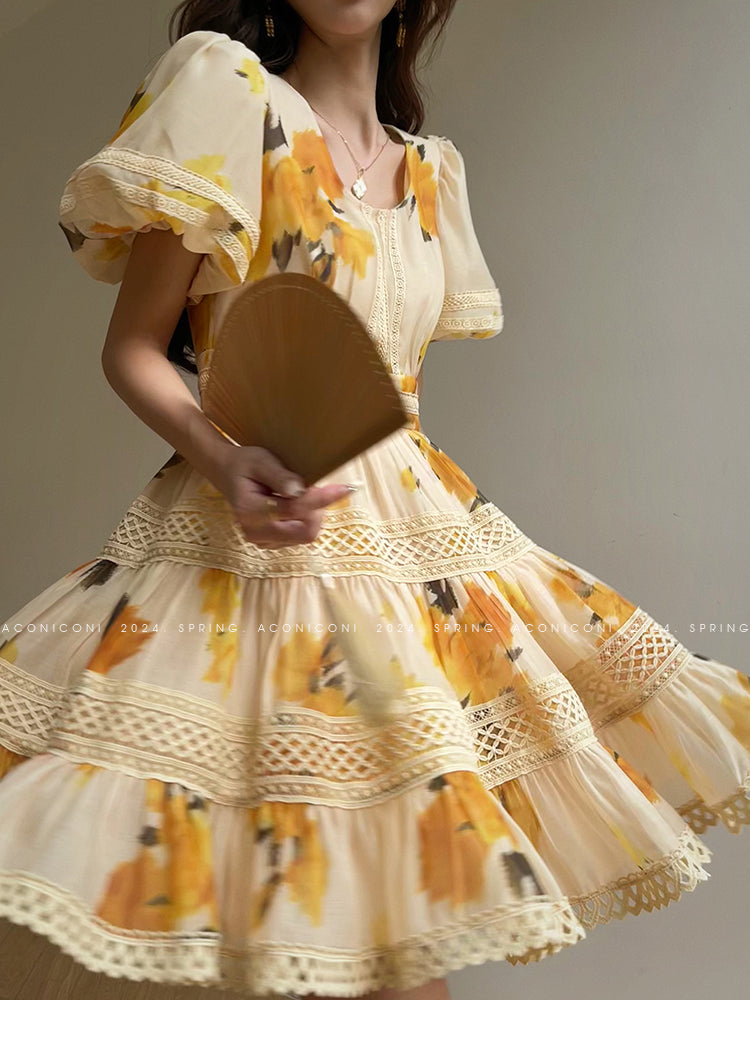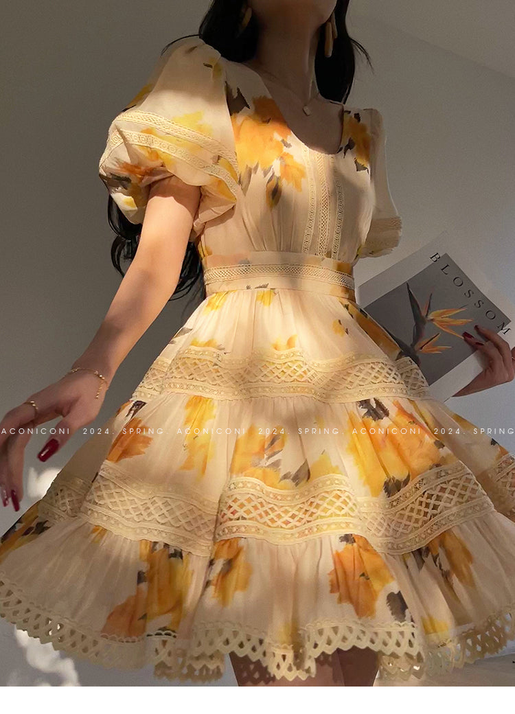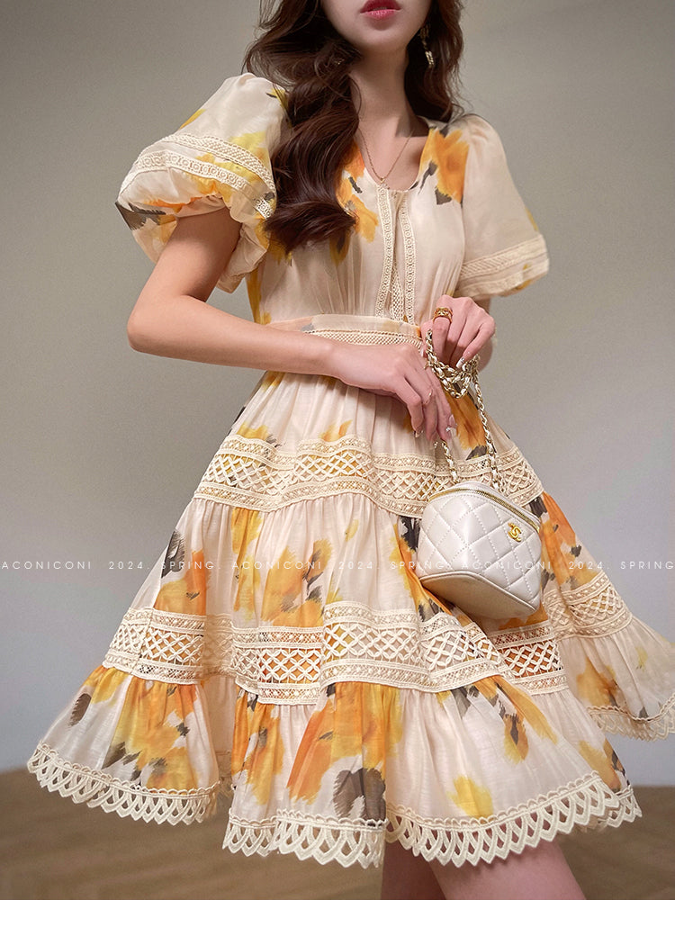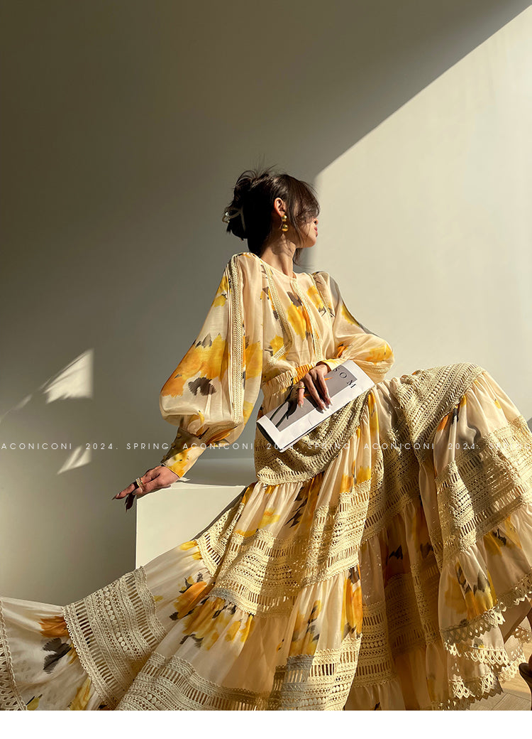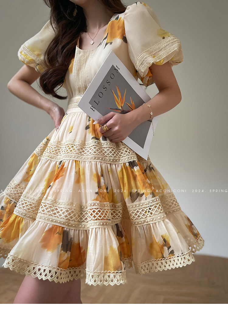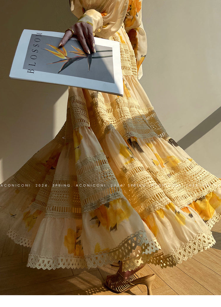 Indulge in elegance and sophistication with our Aconiconi Warm French Printed Heavy Lace Shirt A-line Swing Resort Dress. The dashing and unique style of this dress, featuring puffy sleeves and heavy lace detailing, exudes a luxurious and fashionable vibe. Perfect for fall outings, this dress is the perfect combination of chic and sexy.