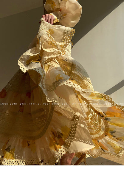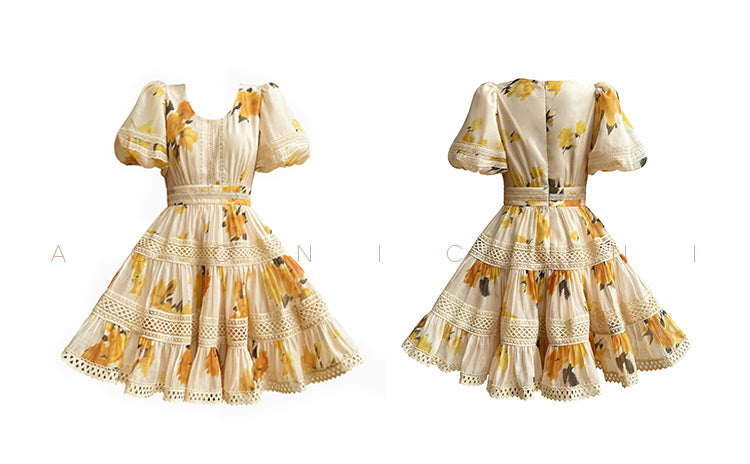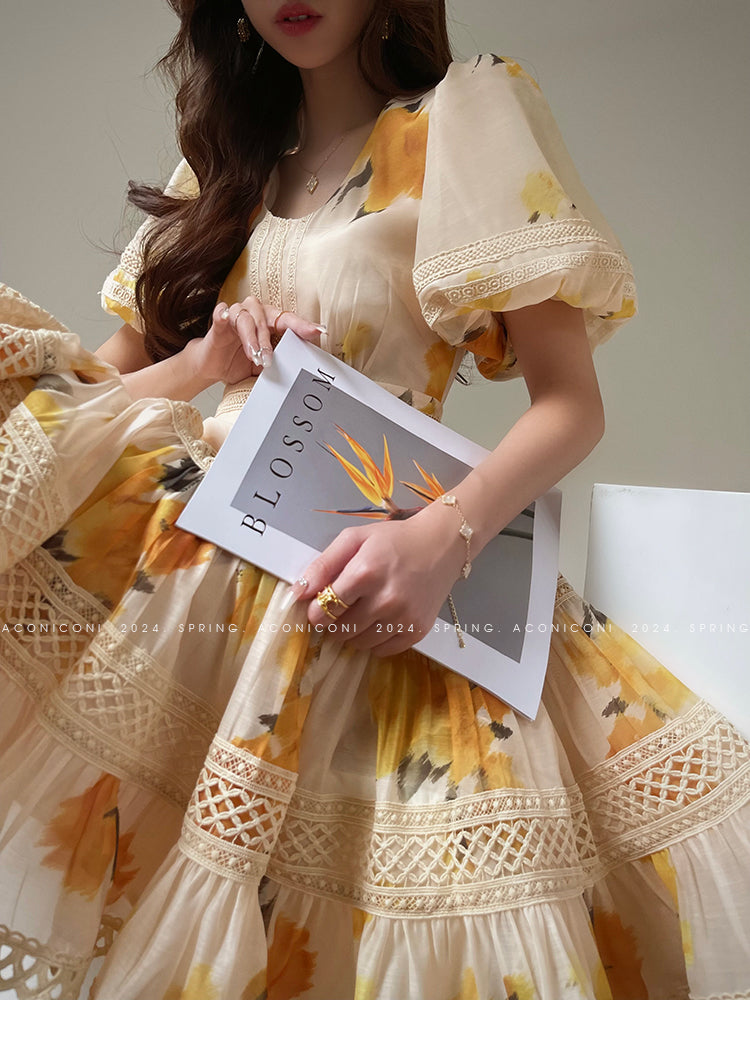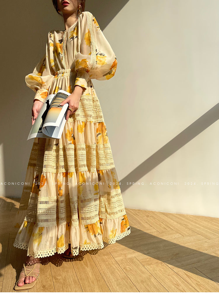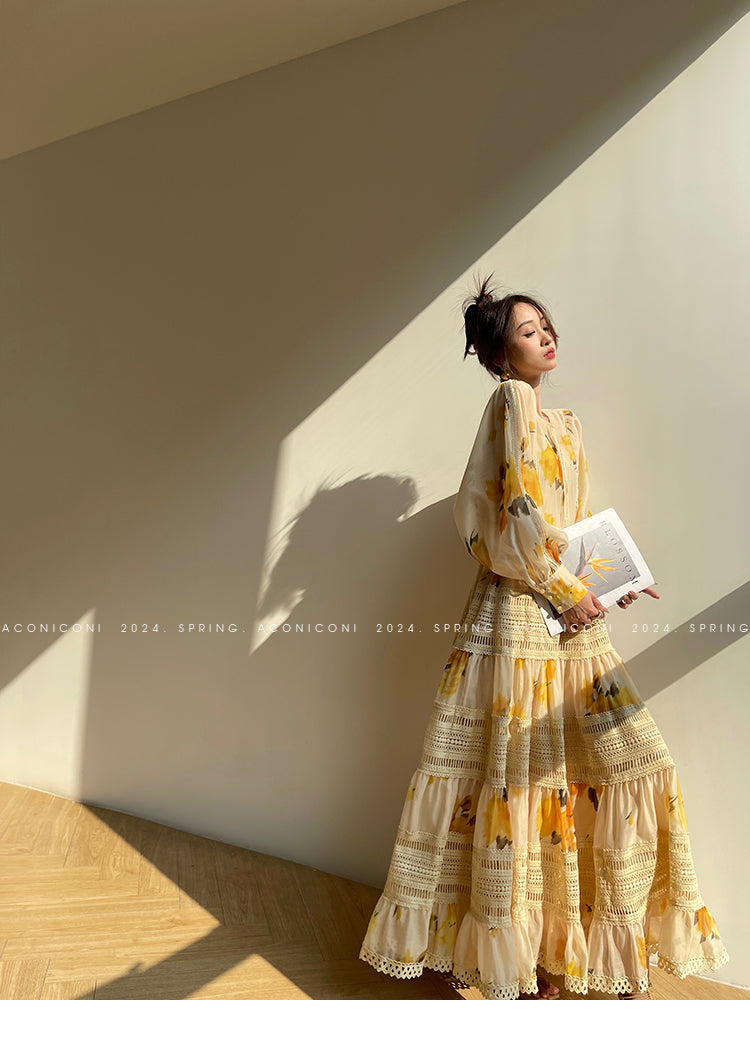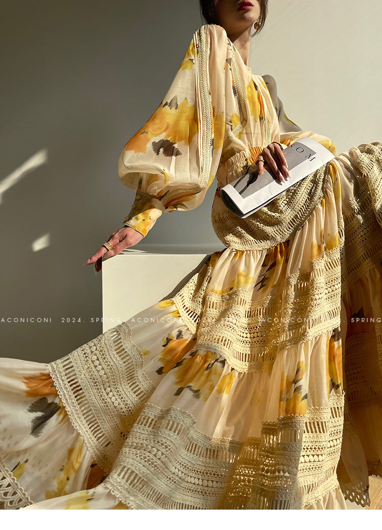 Indulge in elegance and sophistication with our Aconiconi Warm French Printed Heavy Lace Shirt A-line Swing Resort Dress. The dashing and unique style of this dress, featuring puffy sleeves and heavy lace detailing, exudes a luxurious and fashionable vibe. Perfect for fall outings, this dress is the perfect combination of chic and sexy.