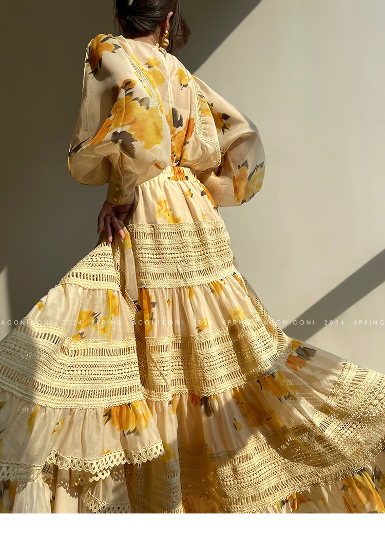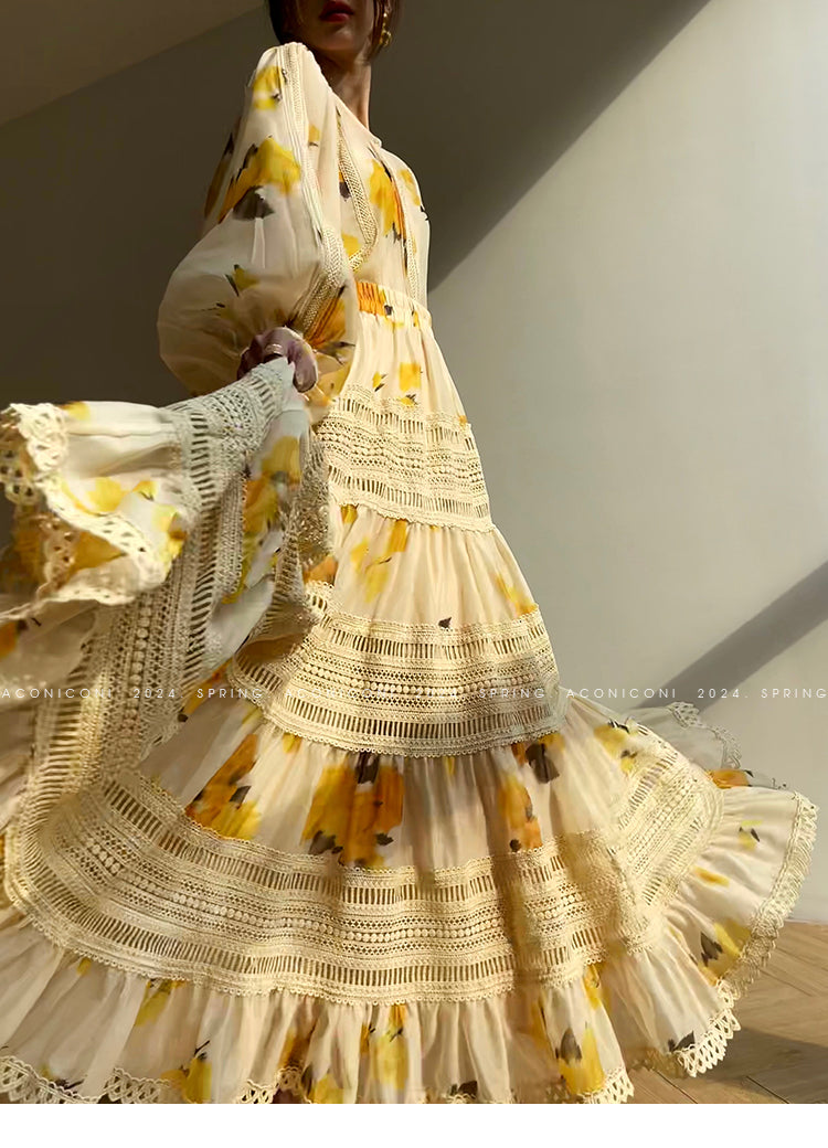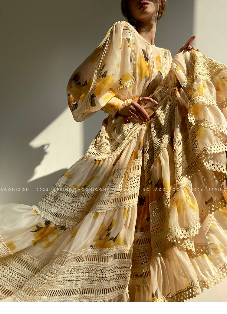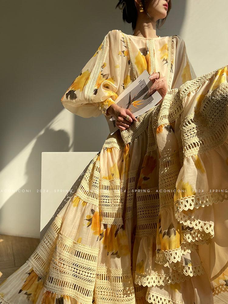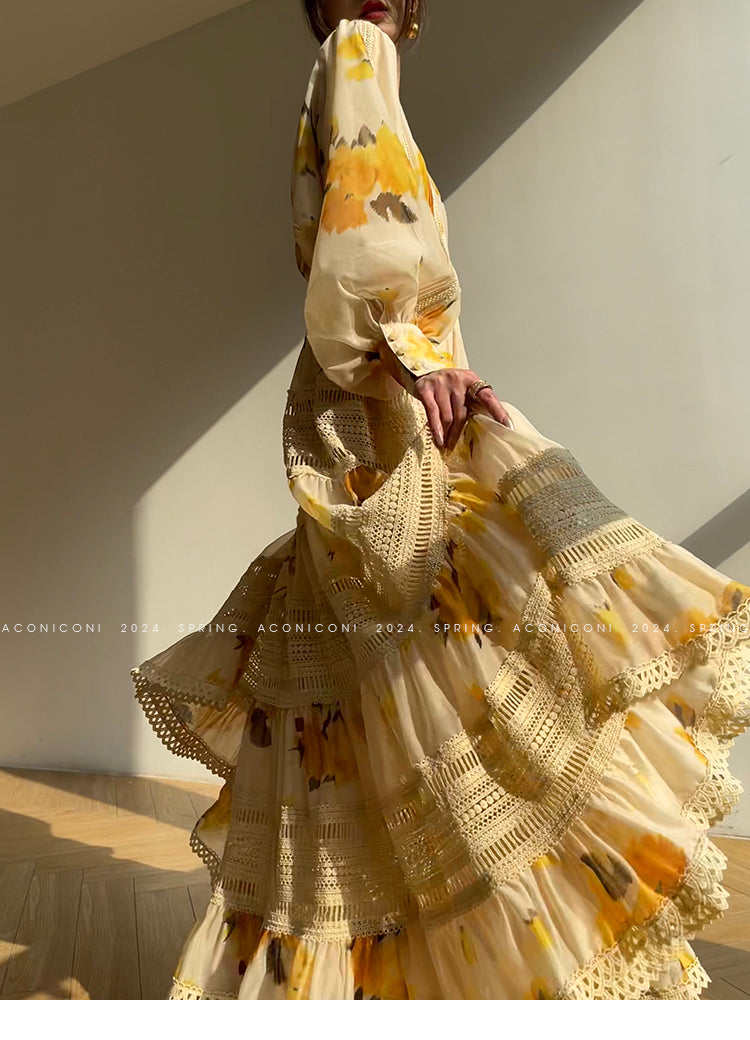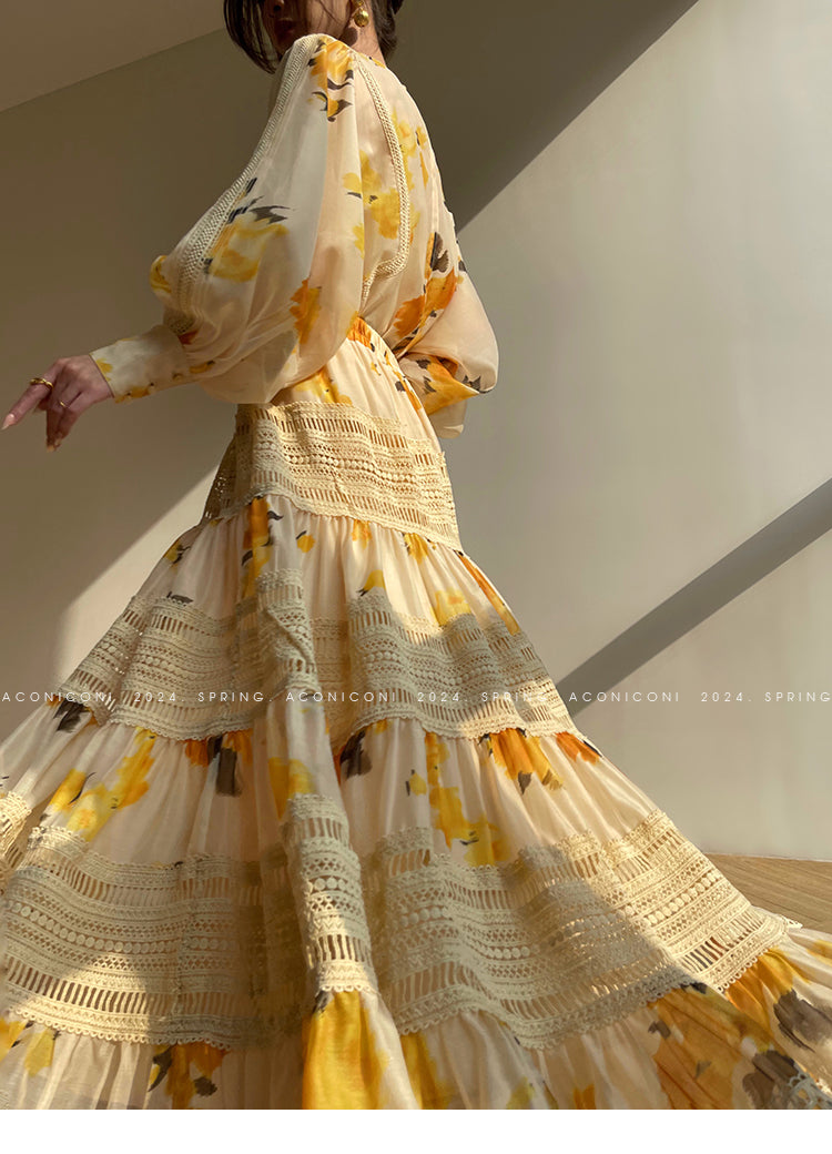 Indulge in elegance and sophistication with our Aconiconi Warm French Printed Heavy Lace Shirt A-line Swing Resort Dress. The dashing and unique style of this dress, featuring puffy sleeves and heavy lace detailing, exudes a luxurious and fashionable vibe. Perfect for fall outings, this dress is the perfect combination of chic and sexy.