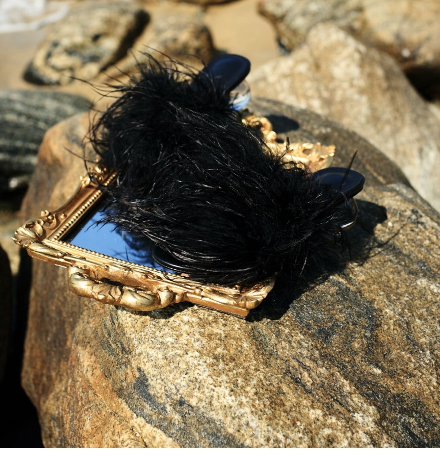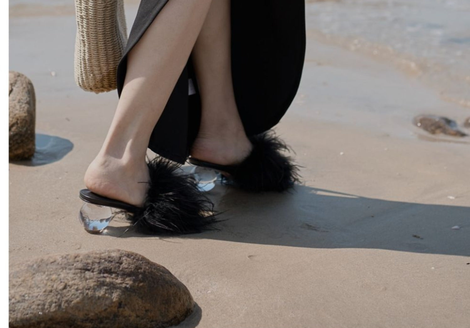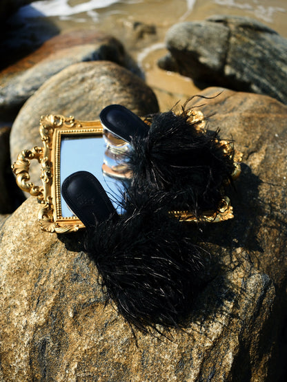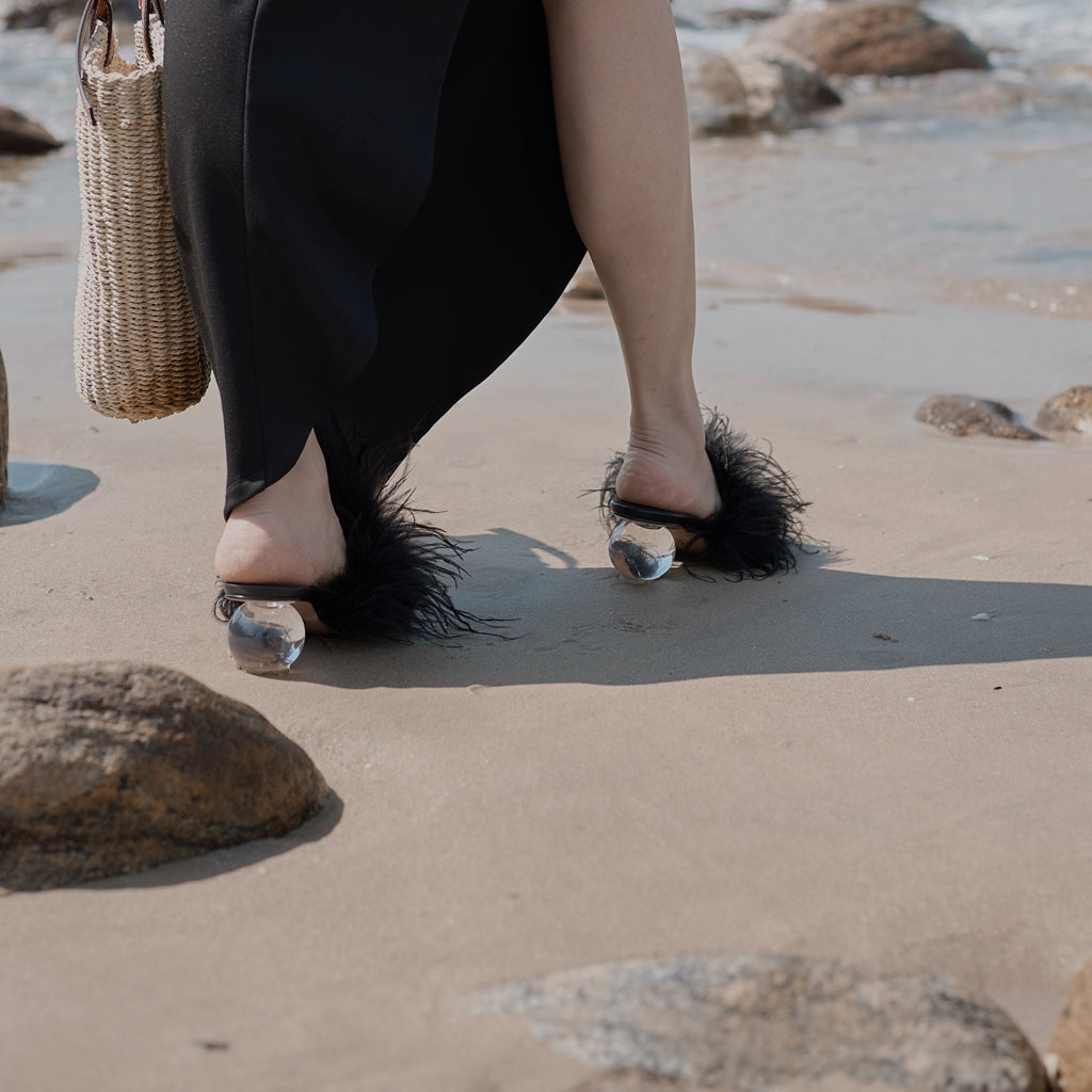 B-FEI black feather sandals transparent heel French Slip-on - Marilyn