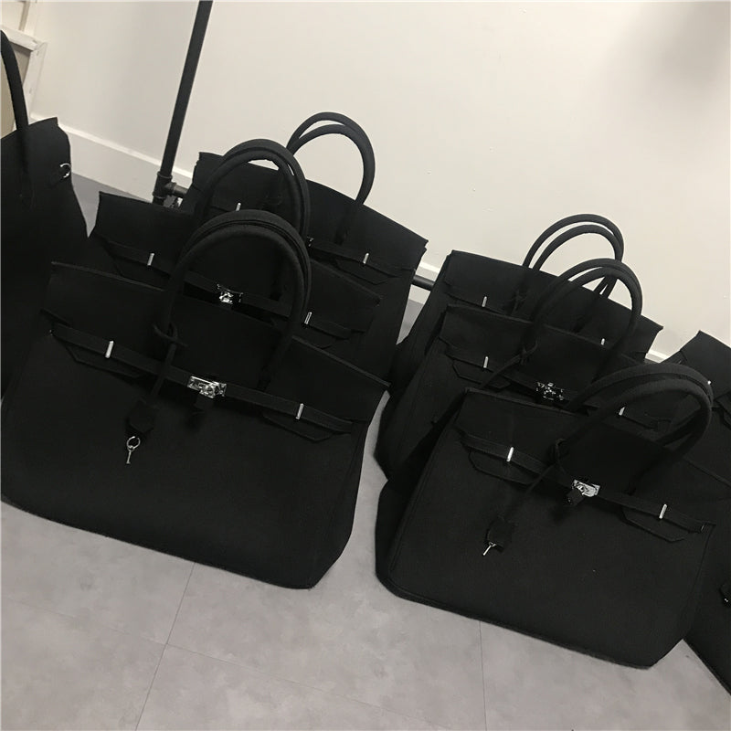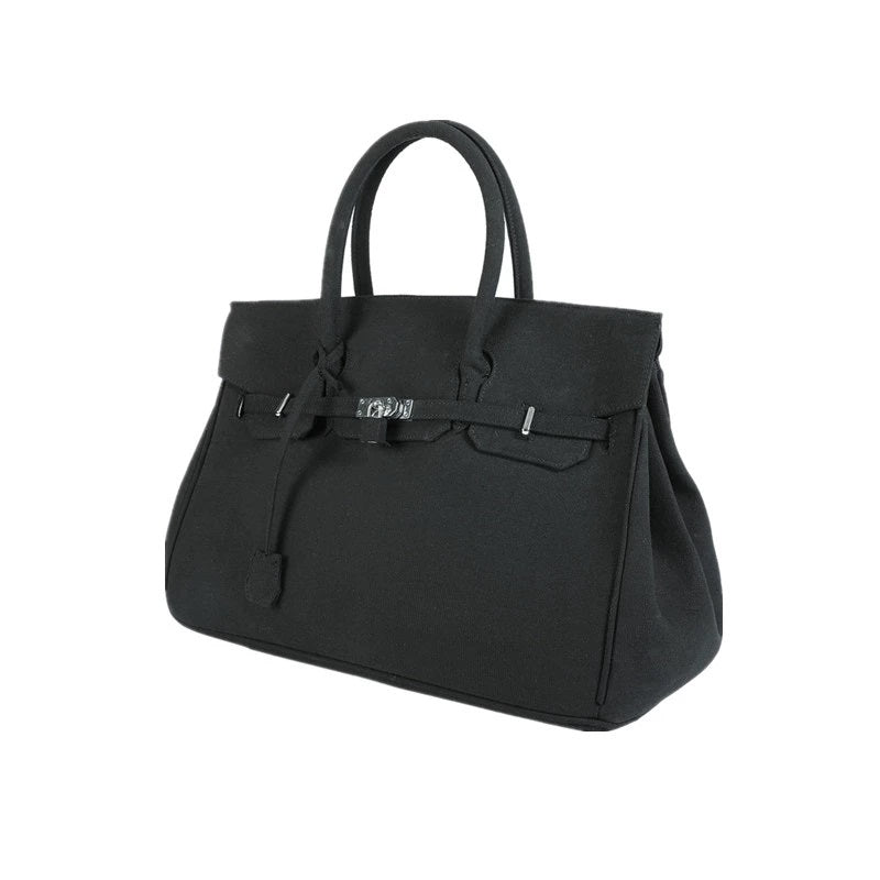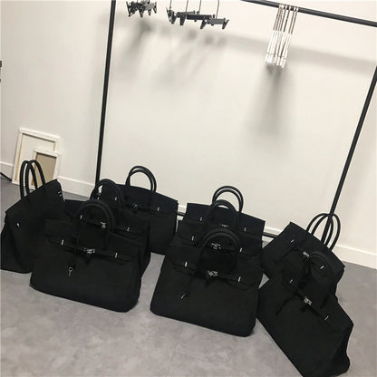 Black large-capacity canvas birkin inspired weekender travel bag