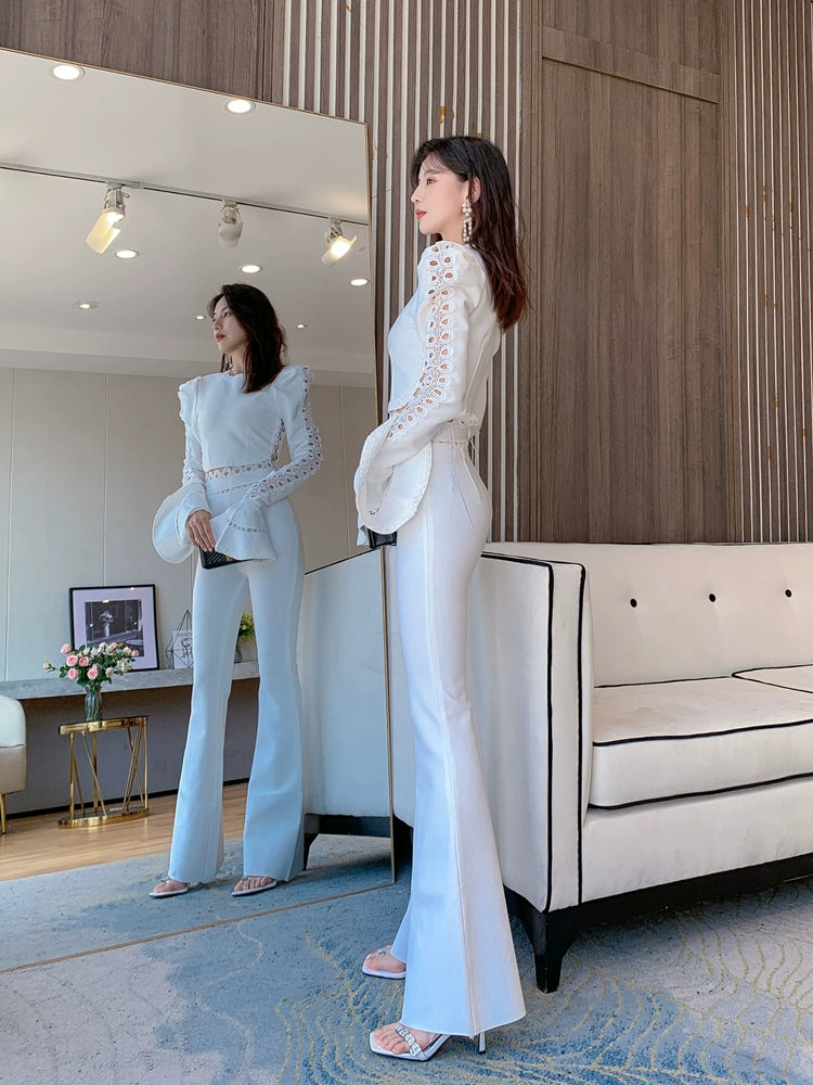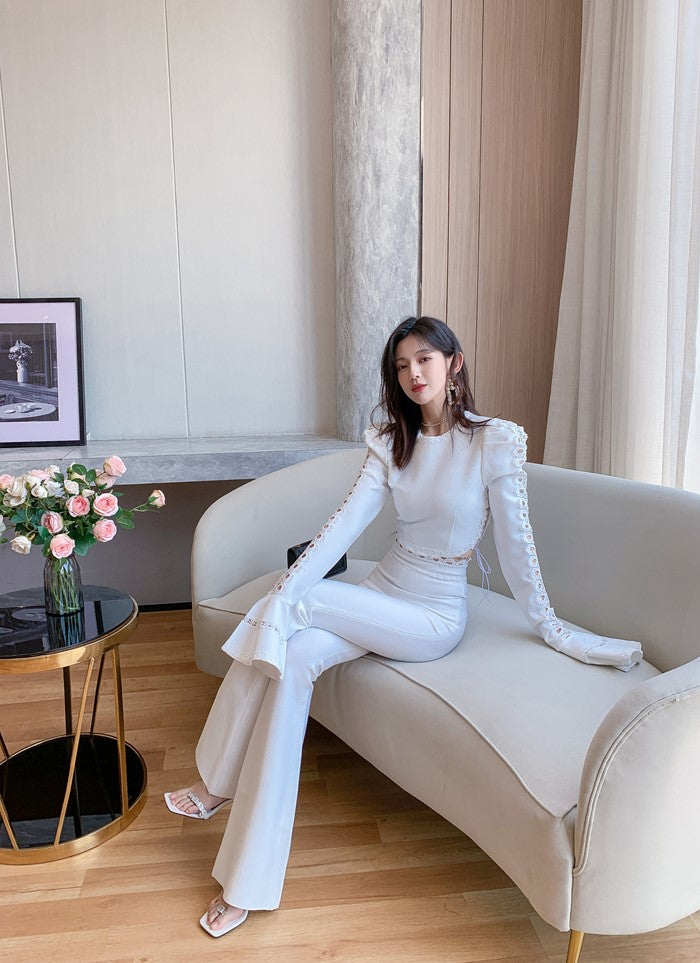 DOLLY Luxury Long Trumpet Sleeve Crop Top+ High Waist Long Flared Pants-LOLA