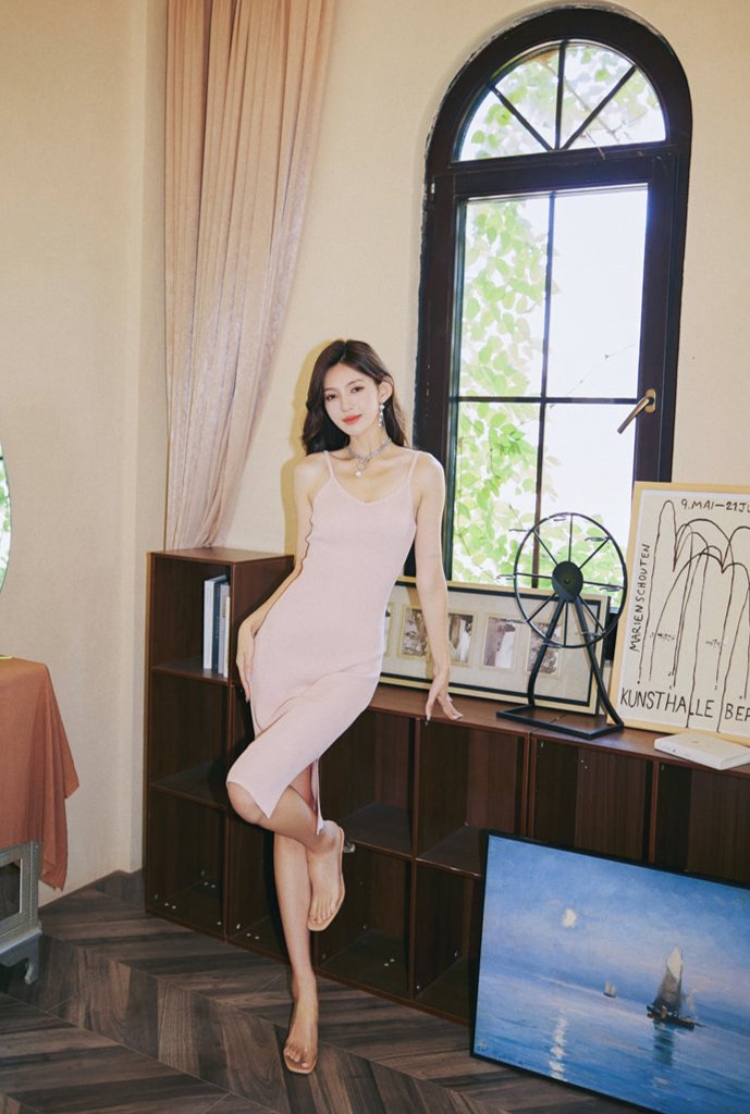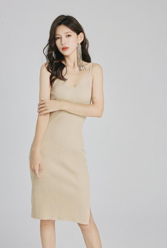 DOLLY Luxury Simple V-Neck Sleeveless Slim Fit Knitted Split Hip Date Dress-KELA