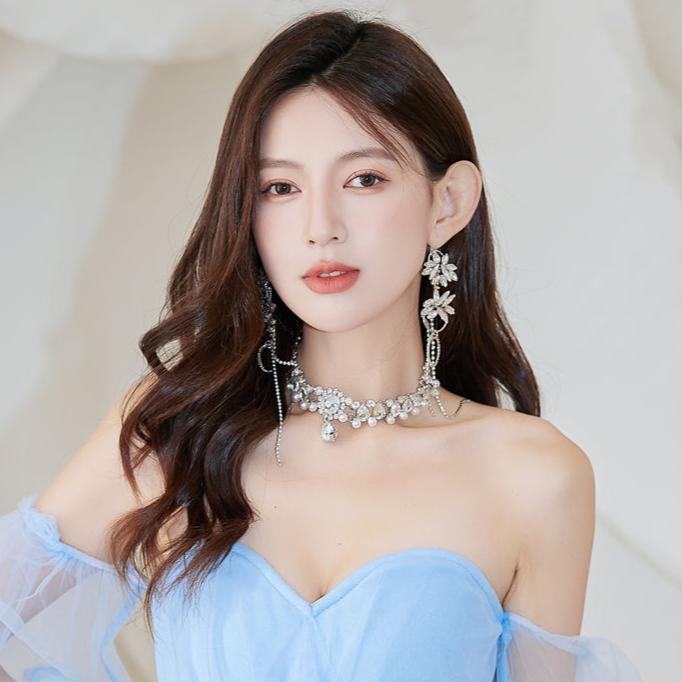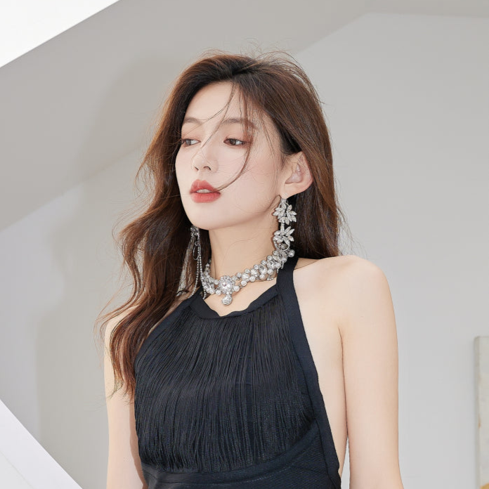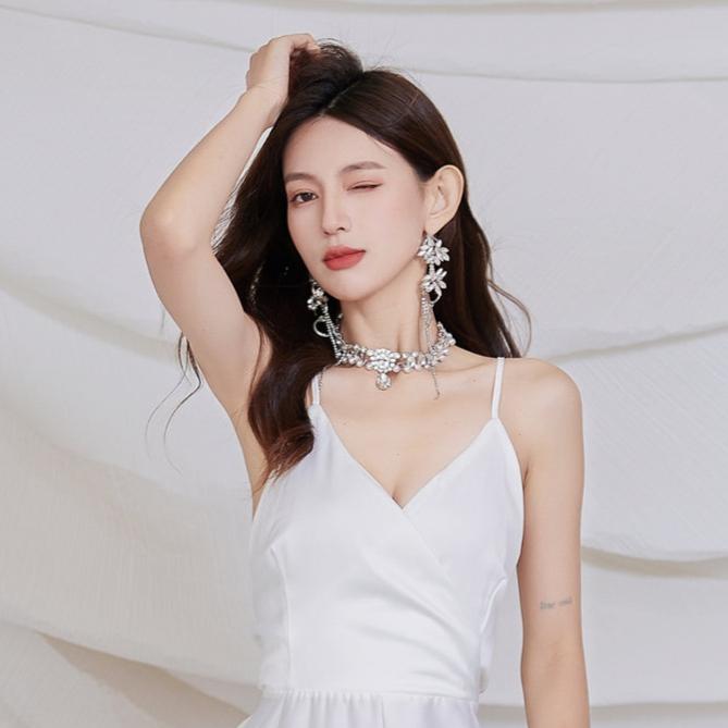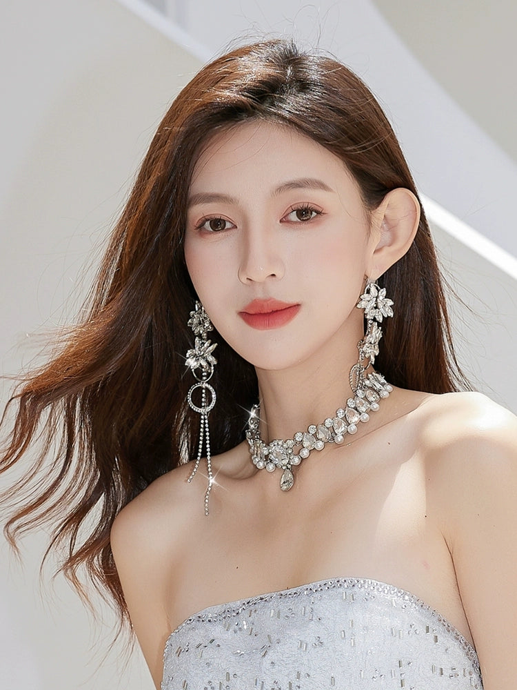 DOLLY Luxury Sliver European Style Flower Diamond Tassel Chic Earring-TALULLA