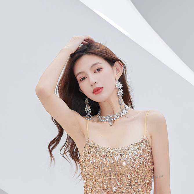 Indulge in the utmost elegance with the DOLLY Luxury Sliver European Style Flower Diamond Tassel Earrings. Designed to embody sophistication, these CHIC earrings feature a stunning diamond-studded flower and tassels for a touch of exclusivity to any outfit. Elevate your style with these exquisite earrings.