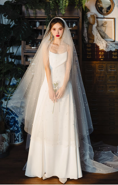 Early Spring 2023 original Straight Shoulder Strap simple wedding bridal dress- Confession
