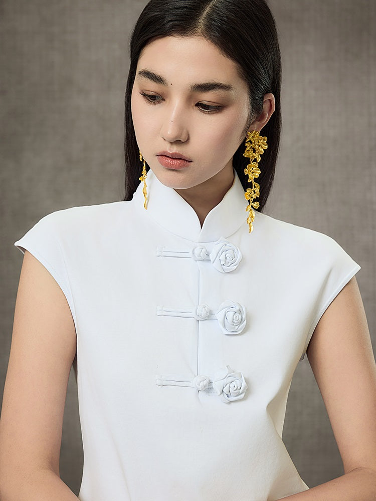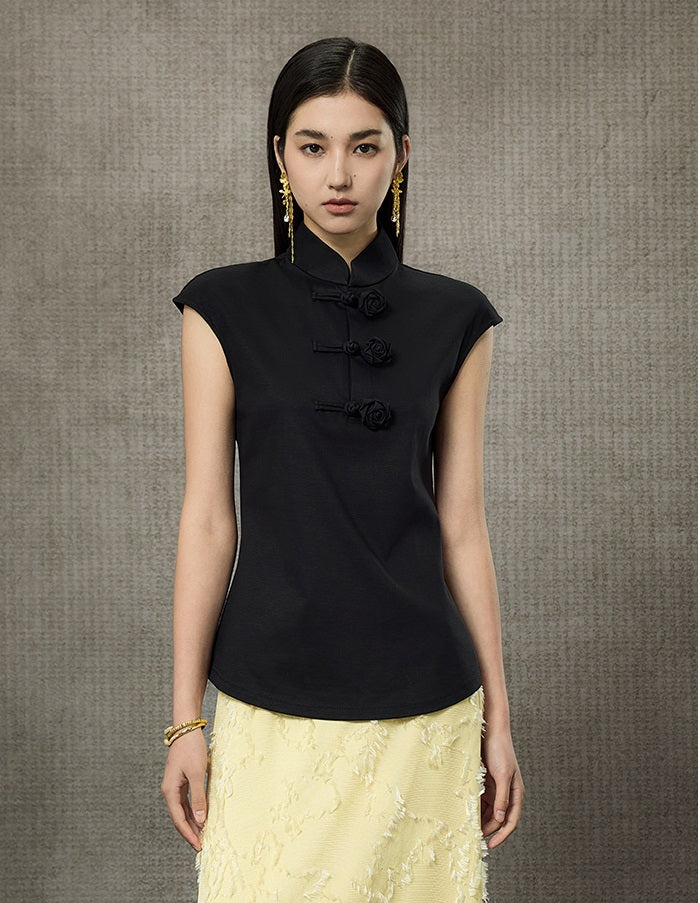 HECO Short Rose Sleeveless Mandarin Neckline Top - PRINCESS.