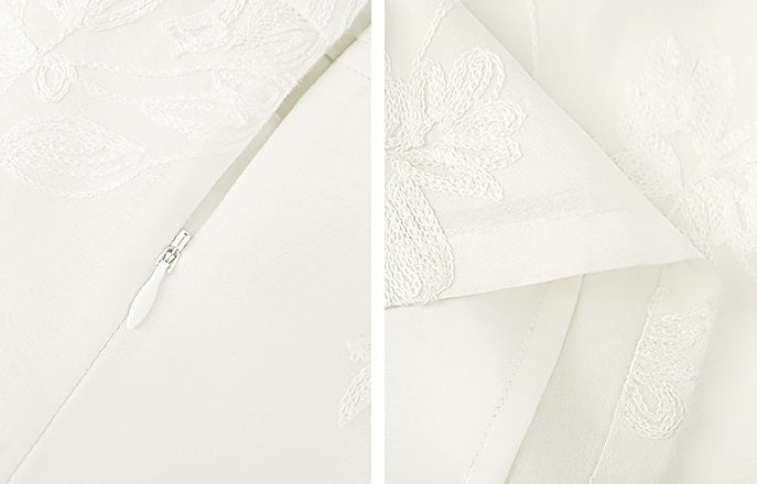 This HECO Embossed Jacquard Acetate Skirt brings traditional Chinese elements to modern fashion. With its elegant white color and delicate floral embroidery, it is sure to turn heads. The zipper and back slit provide both style and functionality, making it a must-have for any wardrobe.