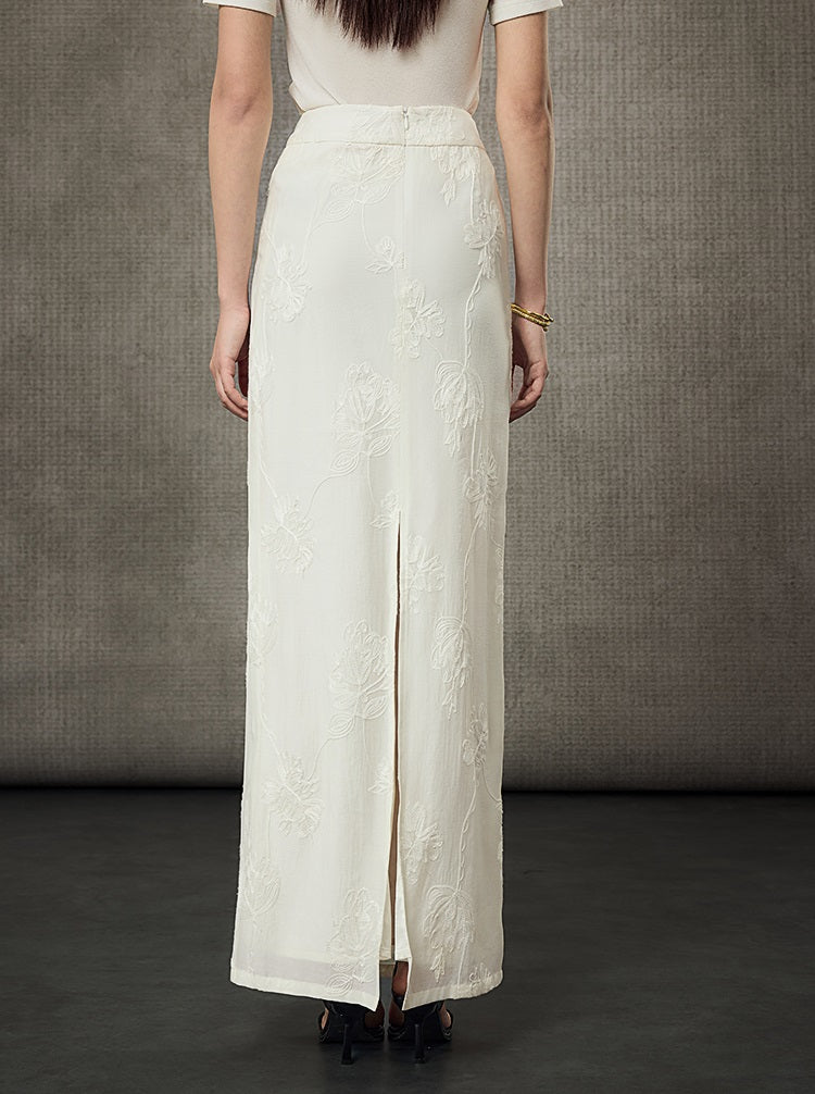 HECO Embossed Jacquard Acetate Long Straight Skirt - COUNCIL.