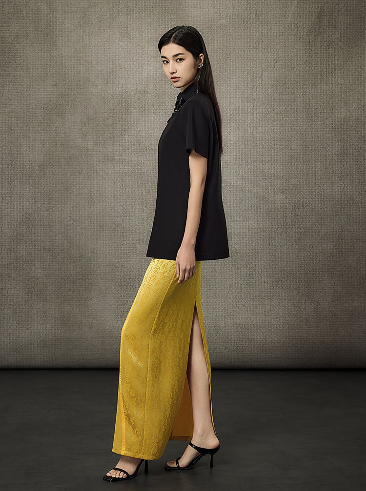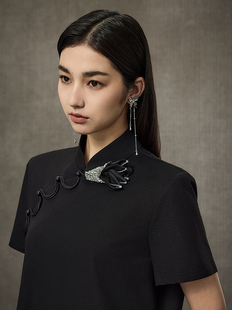 HECO Summer Handmade Orchid Winding Mandarin Neckline Short Sleeve Top - FLIGHT.