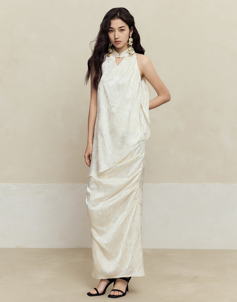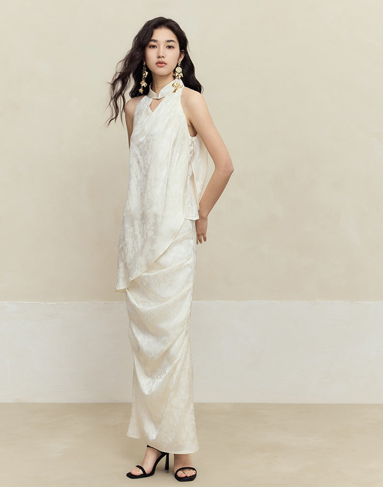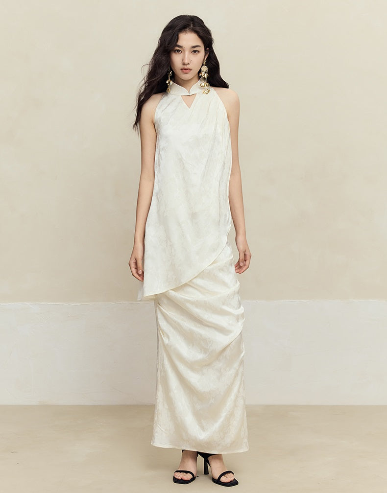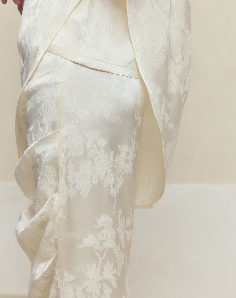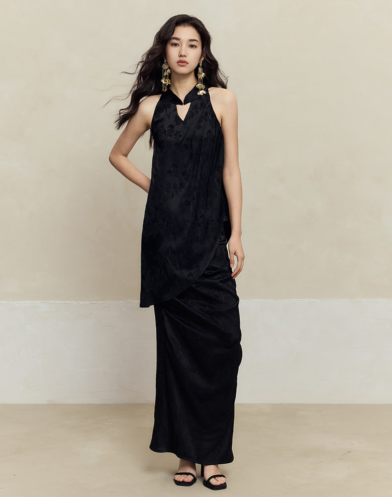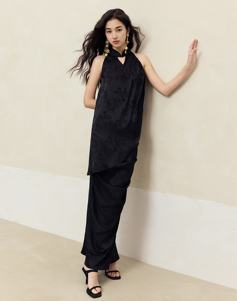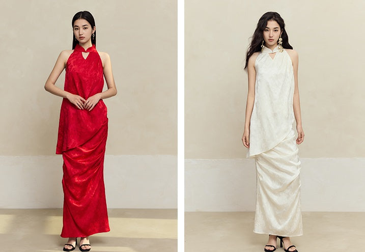 This HECO pleated skirt features a slim, high natural waist design crafted from a blend of 84% acetate fiber, 14% polyester, and 2% spandex for a comfortable, flexible fit. Available in white, red, and black, its long silhouette and refined pleats offer a polished look suitable for both professional and elegant settings.