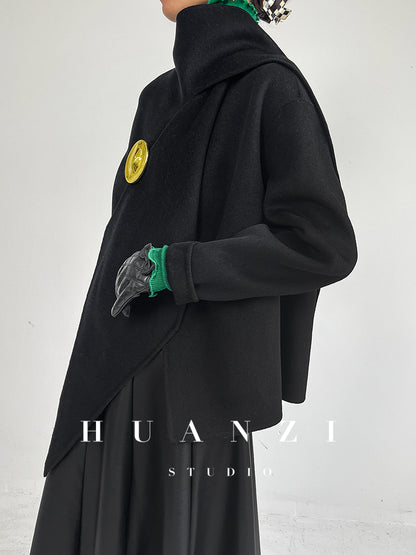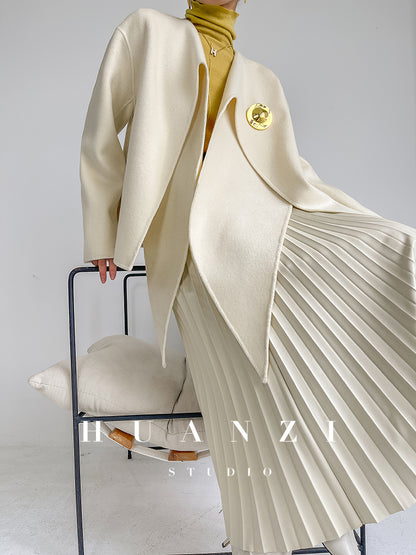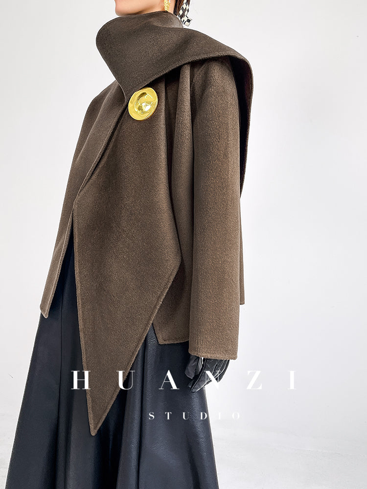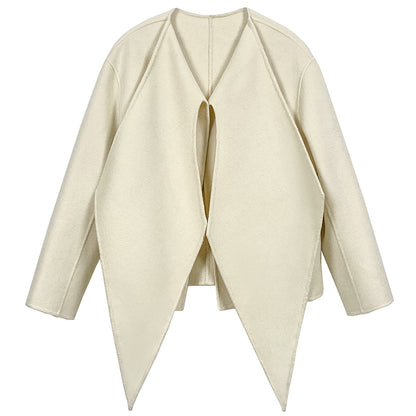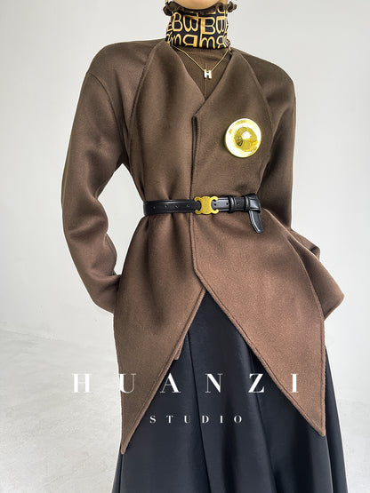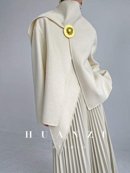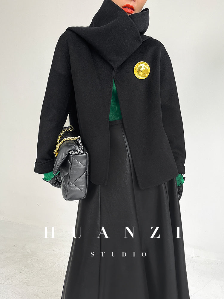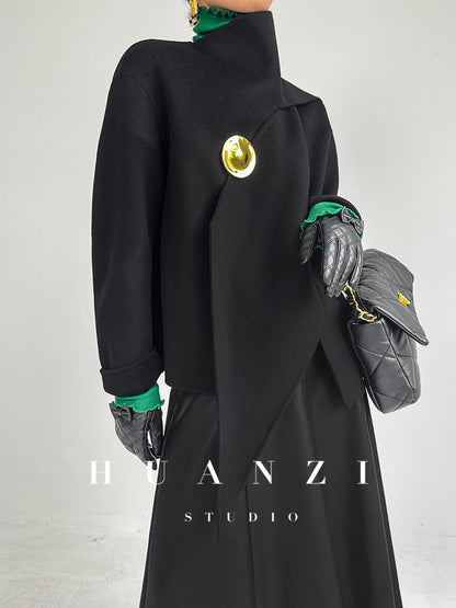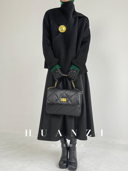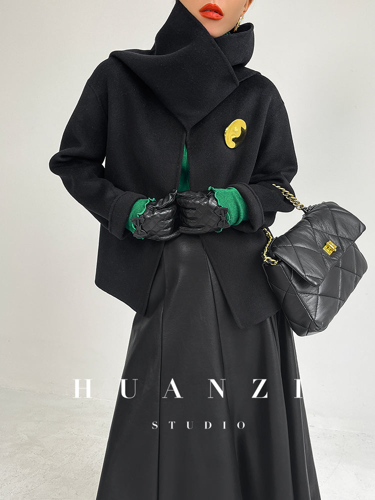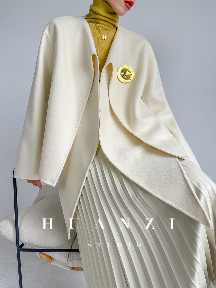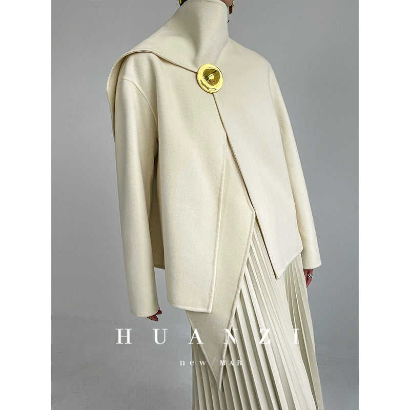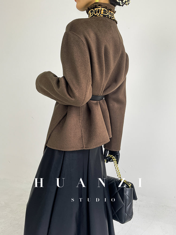 Huanzi wool tweed autumn winter short cashmere double-sided coat - Talfy
