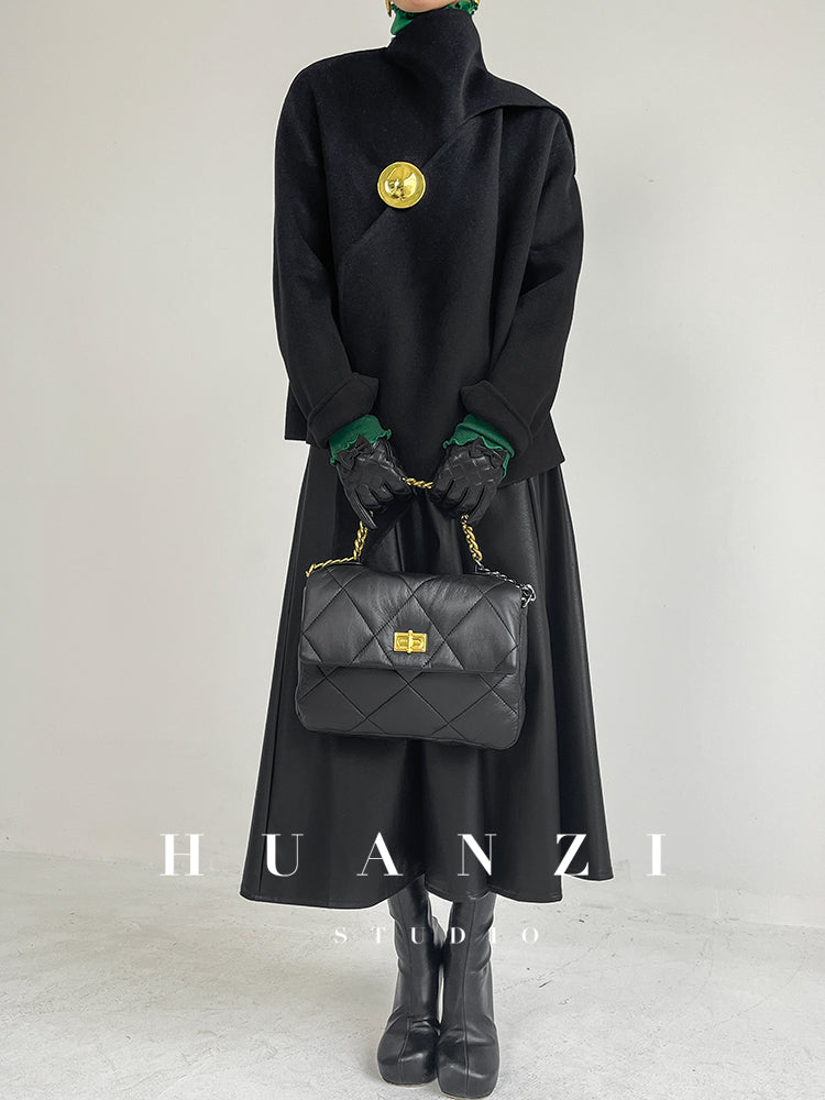This autumn-winter tweed coat by Huanzi is an exquisite garment, crafted from luxurious wool and cashmere for a sophisticated and high-class look. The elegant design and fabulous fabric blend create a truly dashing garment that's perfect for any occasion. elevate your wardrobe with this one-of-a-kind coat.