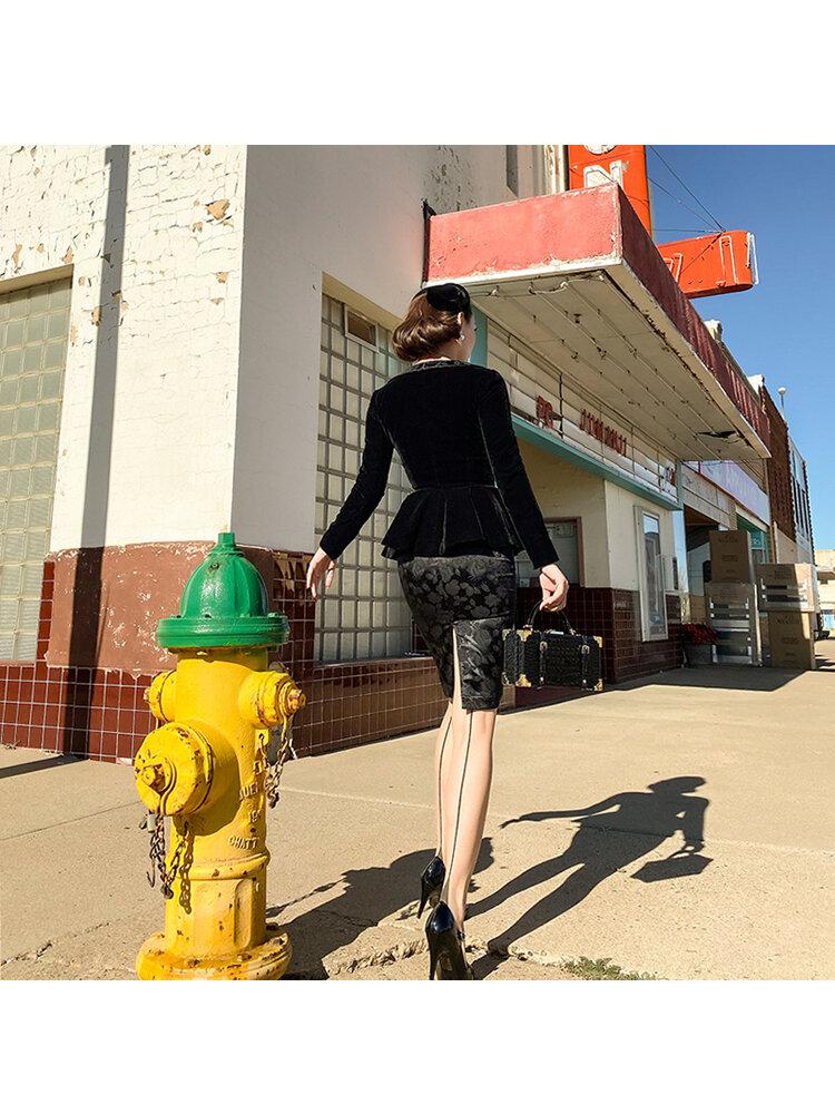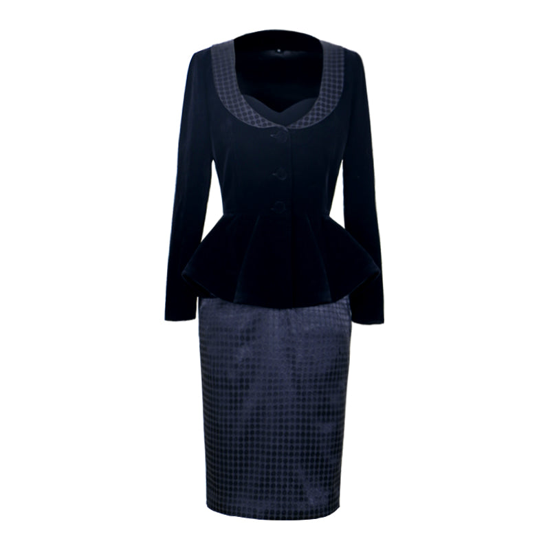 The main fabric of the dress is made of high-quality jacquard satin, fully lined with micro stretch .Classic three-dimensional cut retro and elegant. The main fabric of the jacket is fully lined with high-quality velvet