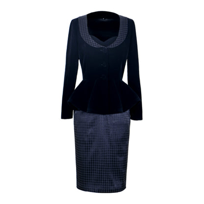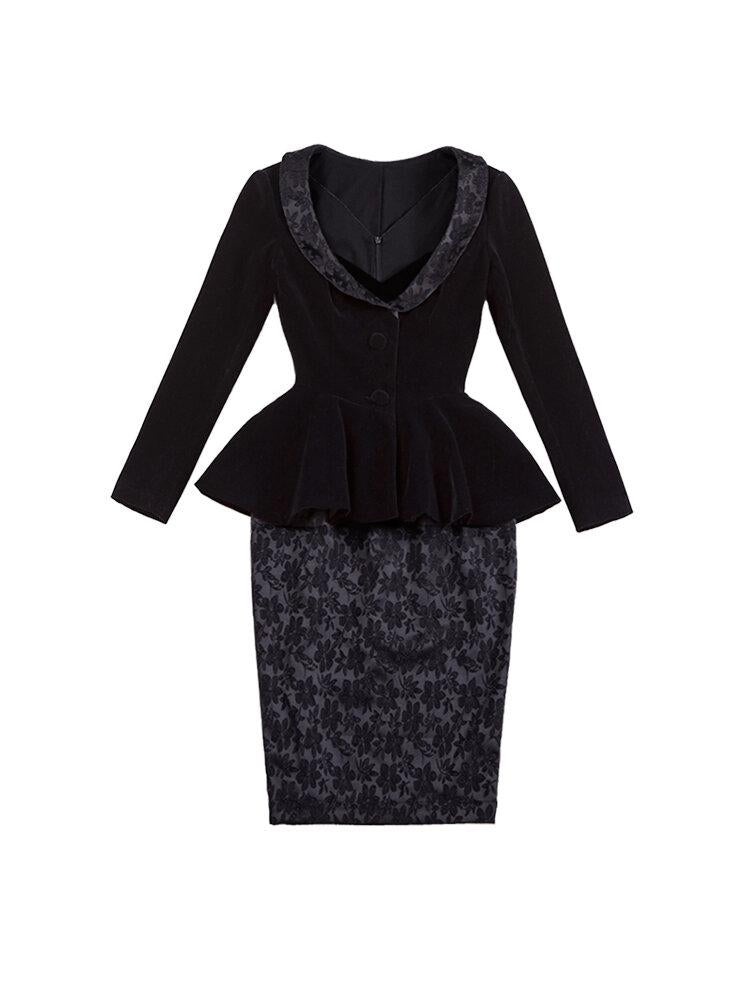 Le Palais vintage autumn winter retro elegant velvet jacquard dress + jacket suit set- Fany