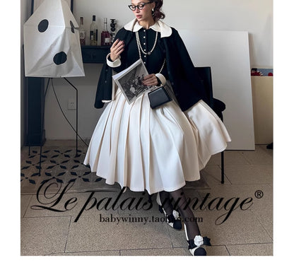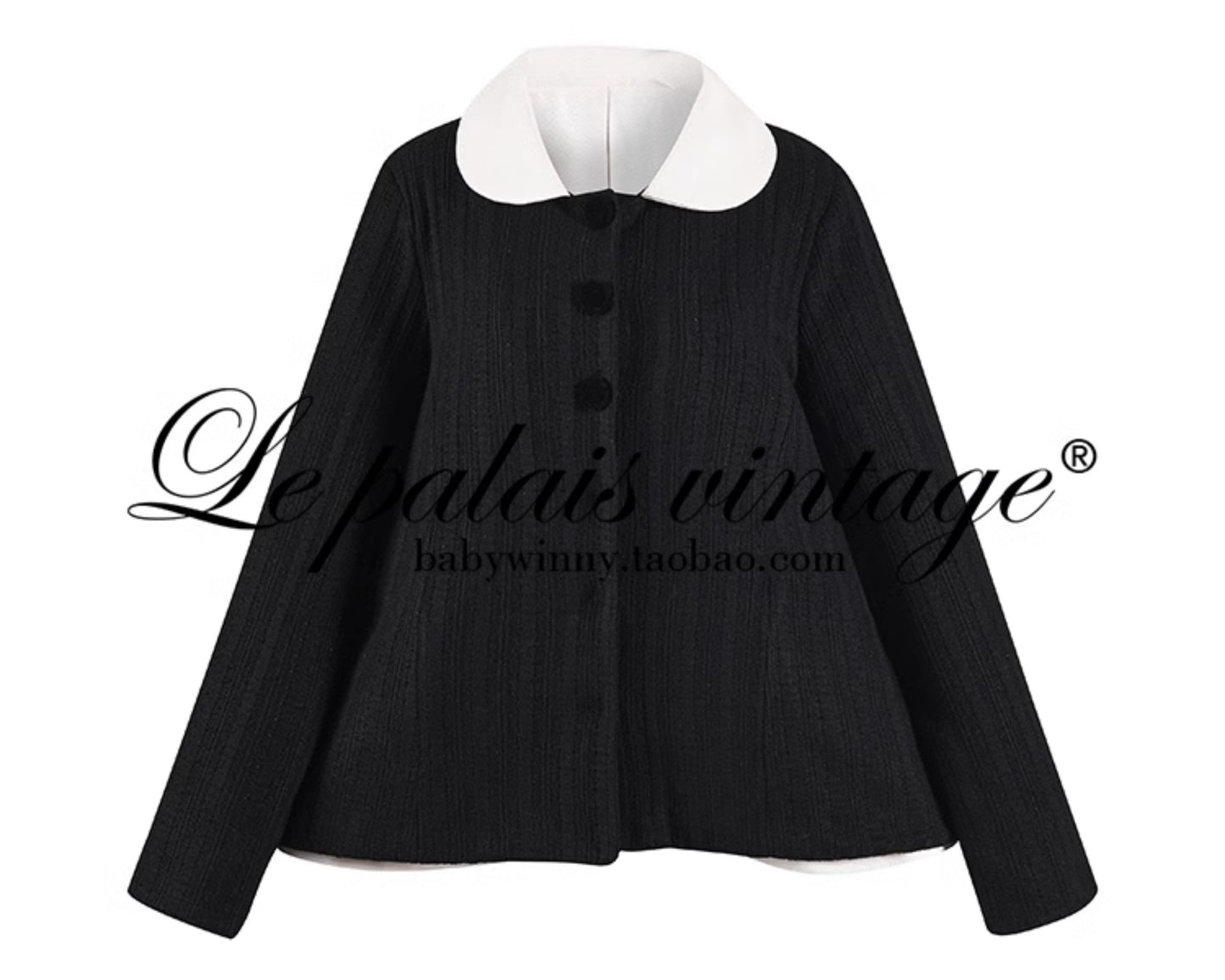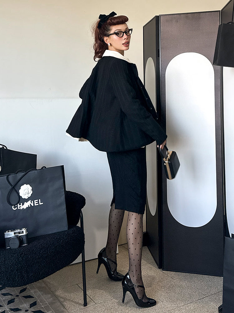 Le Palais Vintage Elegant Black Single breasted Long Sleeve White Collar Jacket -Elena