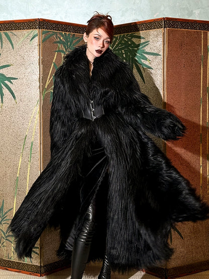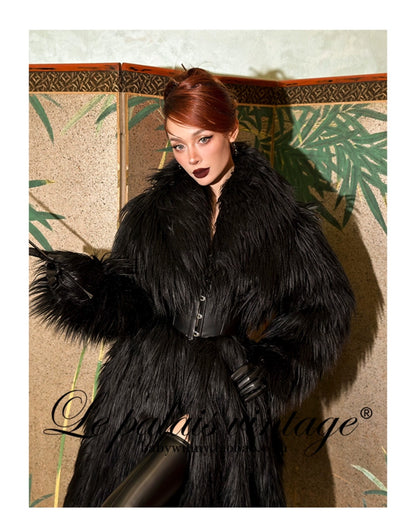 Le Palais Vintage Elegant Black Seal Heavy Long Fur Winter Coat -Raven