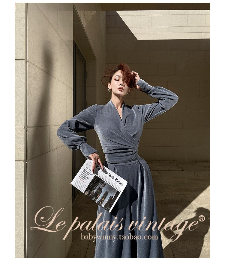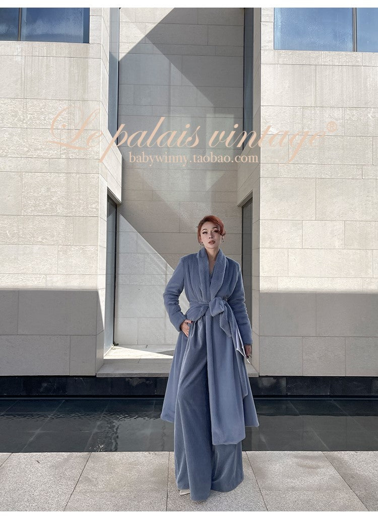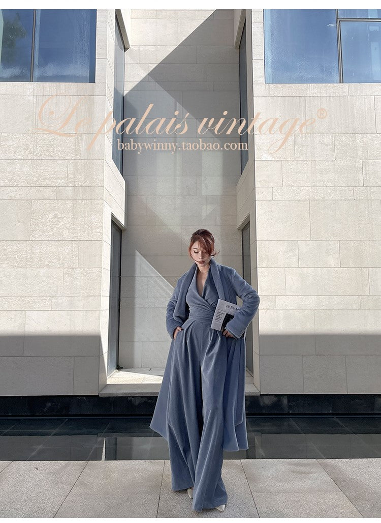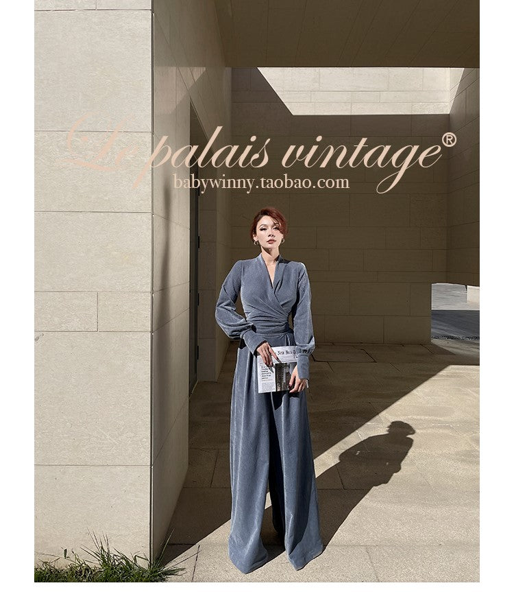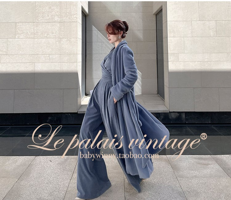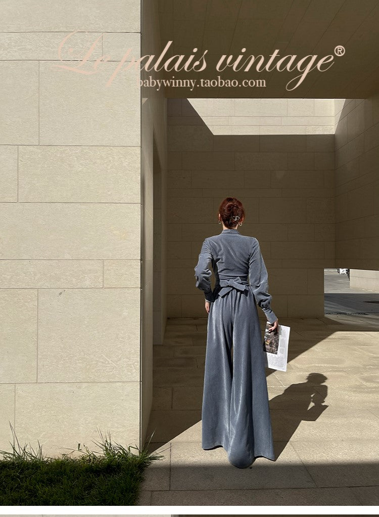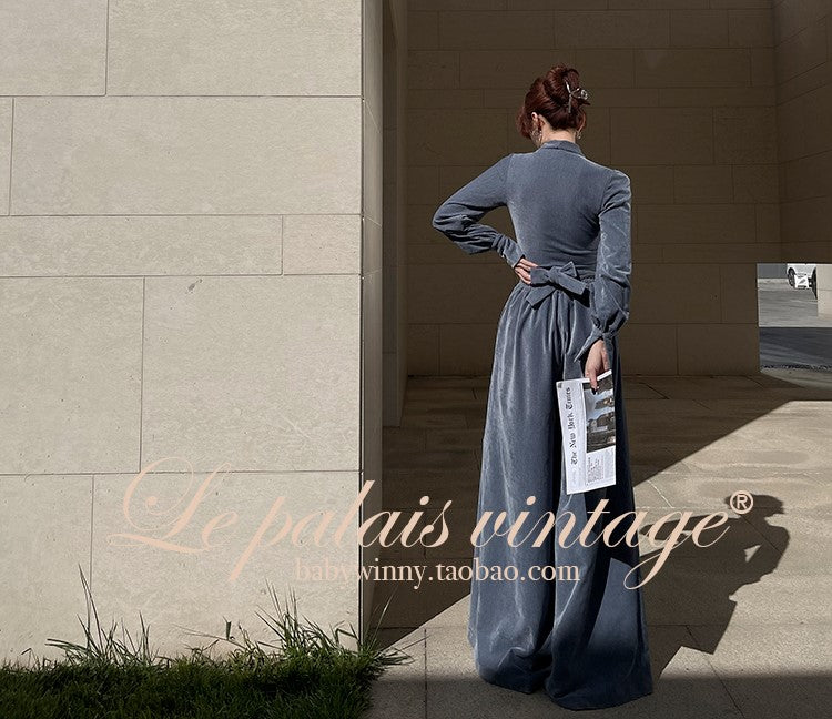 Le Palais Vintage Elegant Matte Velvet Long High waist Wide-leg Pants- Maryann Pant