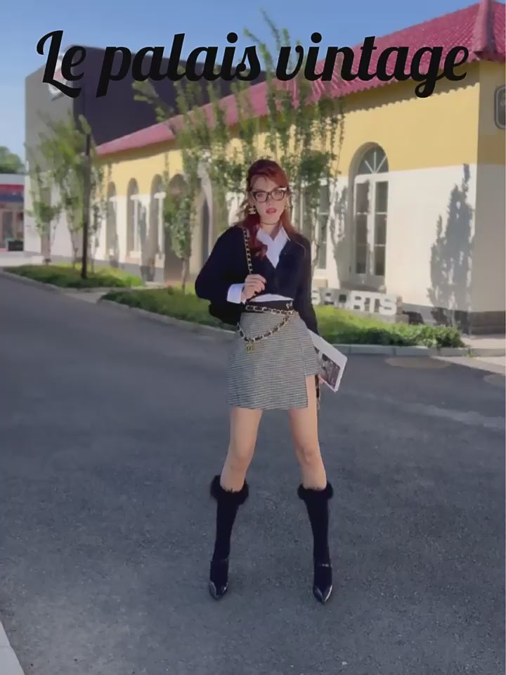Le Palais Vintage Original Irregular Long Woolen Houndstooth Skirt - Mma.
