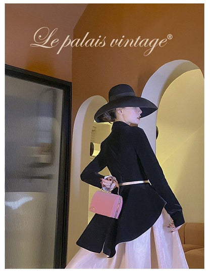 Le Palais vintage original stunning black retro velvet waist coat jacket- Glori