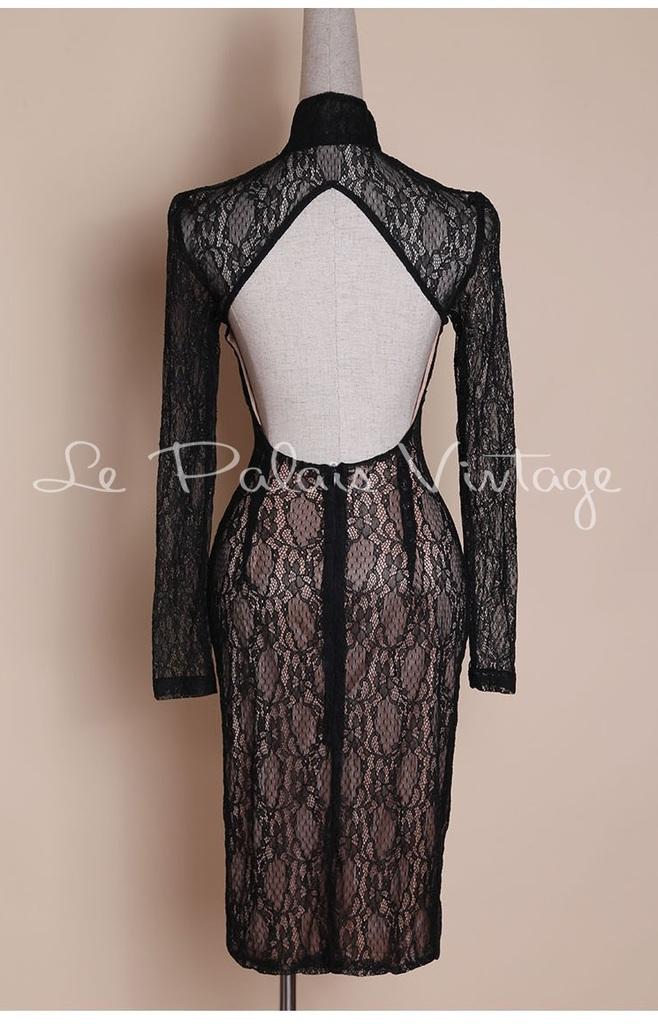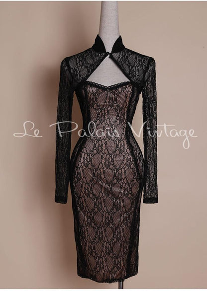 Le Palais vintage retro pin up black lace cut out pencil dress- Hitas