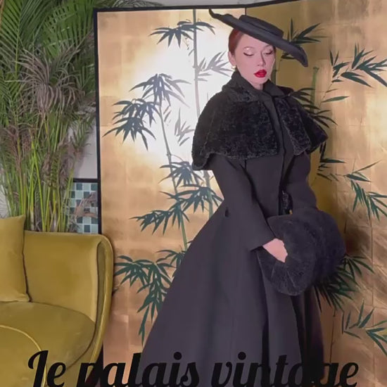Le Palais Vintage's cape black thick woolen coat - Ster.