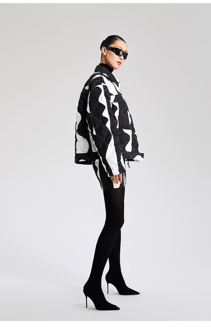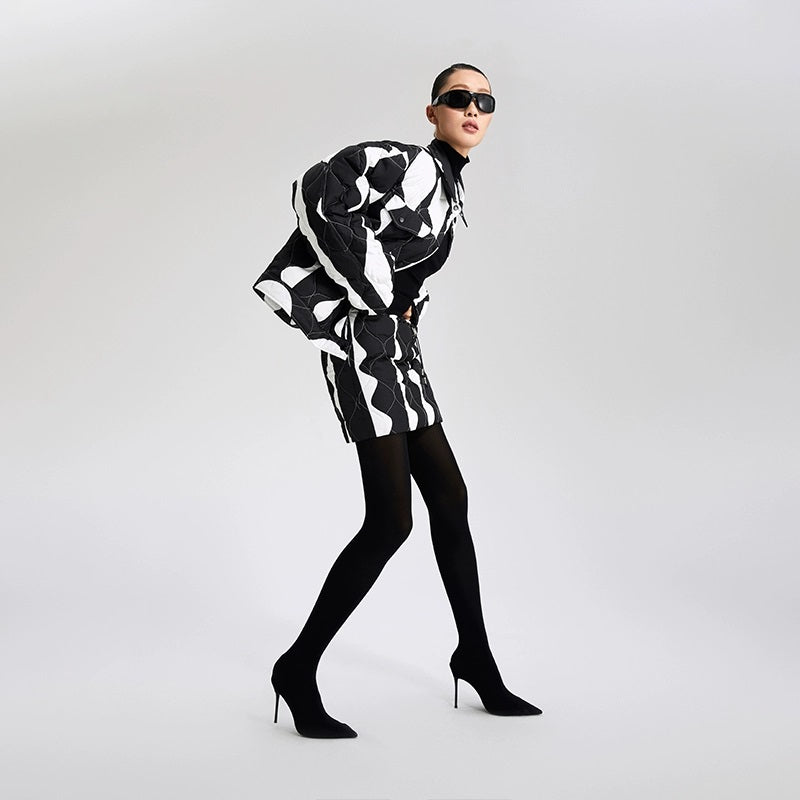 Our LEDI W original design winter black white contrasting down skirt is an exquisite mix of stylish sophistication and bold femininity. The timeless winter hues are complemented by chic down skirt detailing, creating a dashing and elegant look. An essential addition to your wardrobe, this skirt is the perfect blend of fashion, femininity, and power.