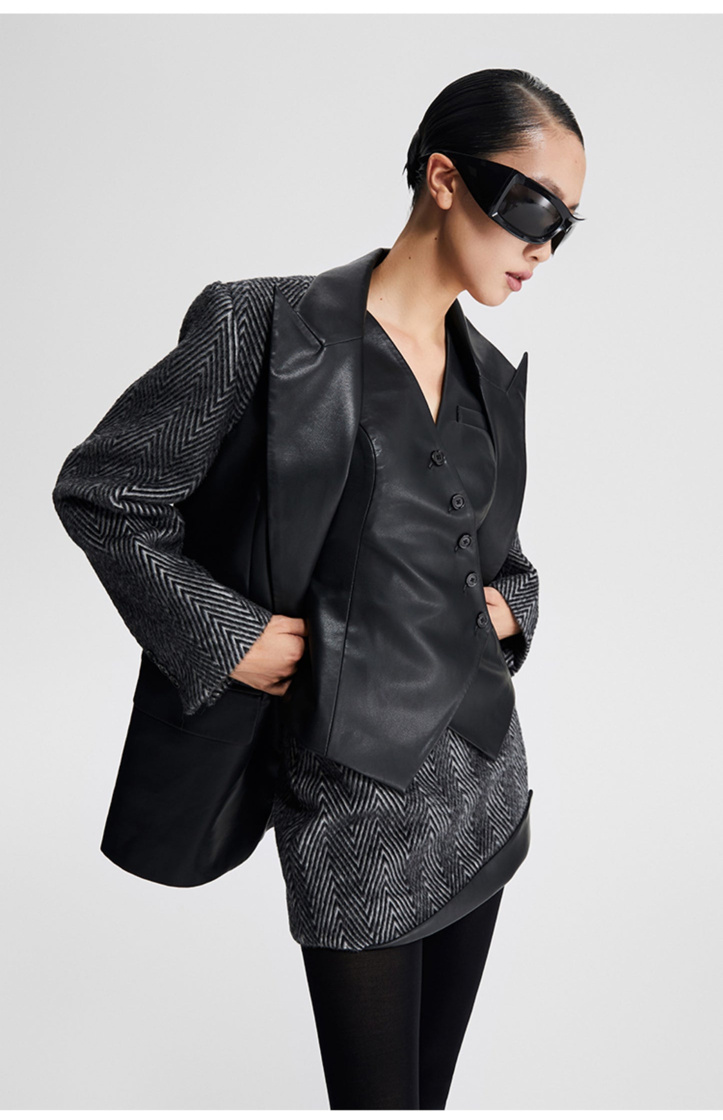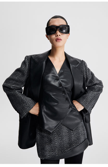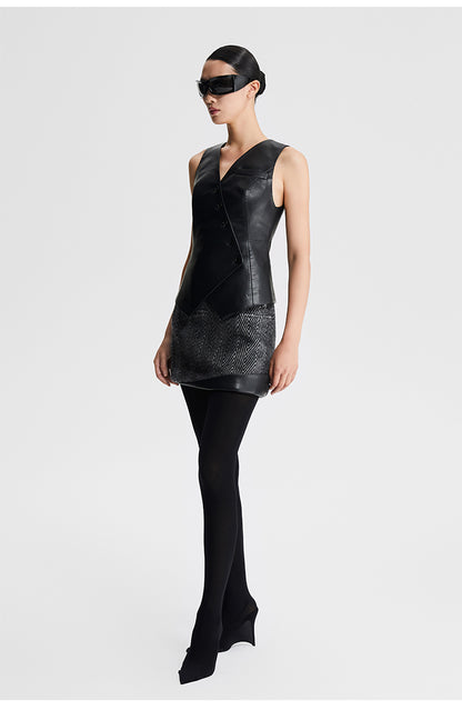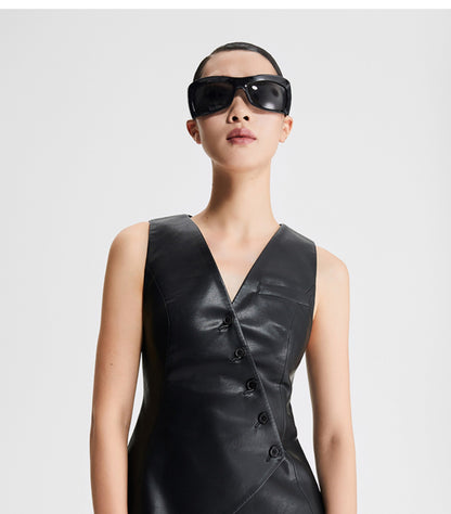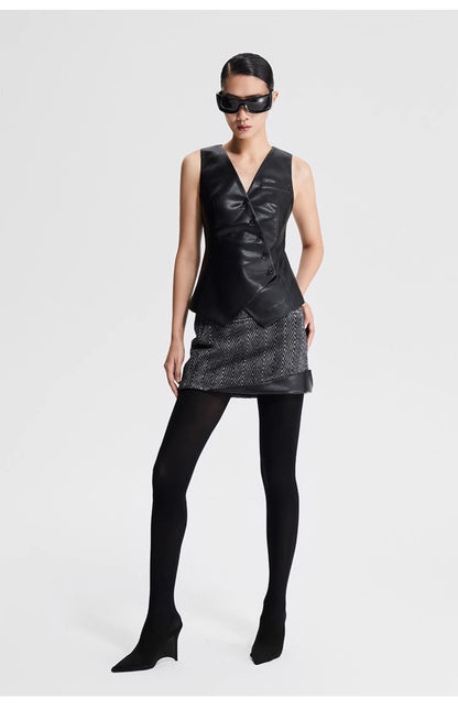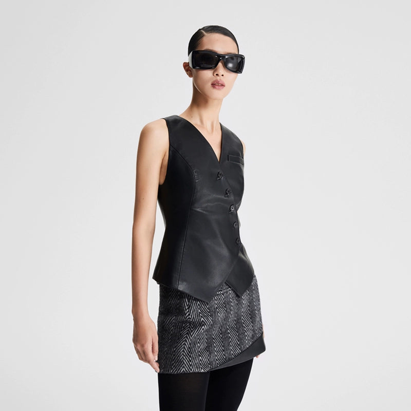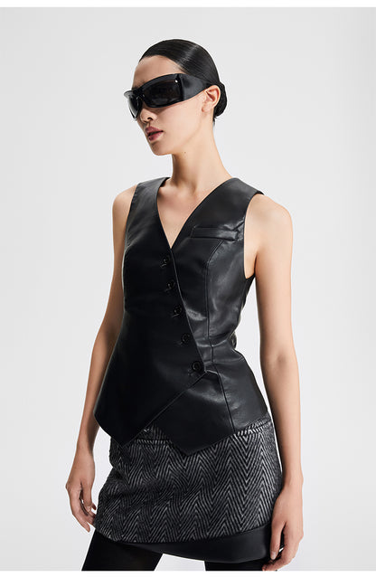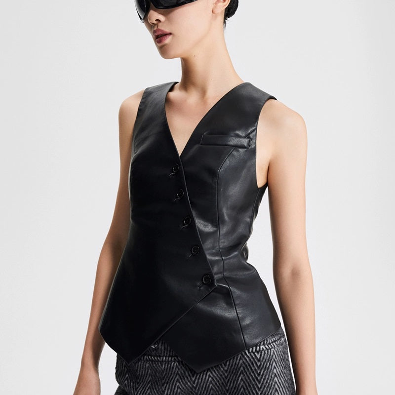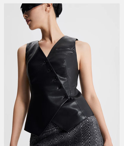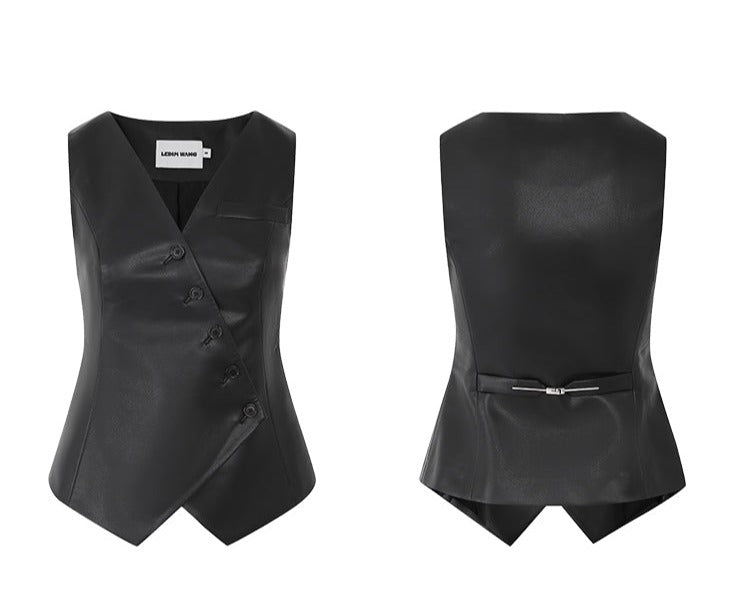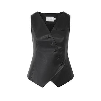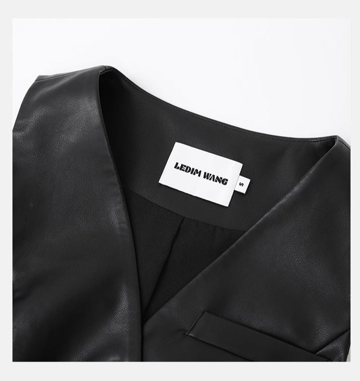 LEDIM W autumn pu leather collarless sleeveless vest jacket top - Delo