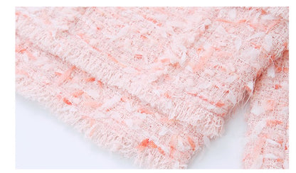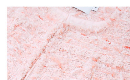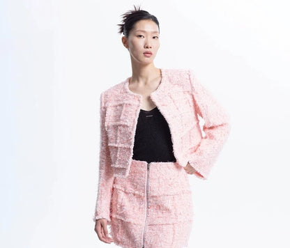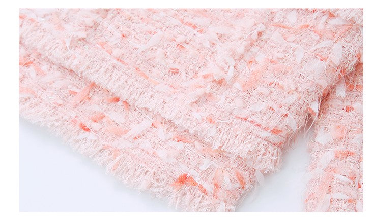 Discover the perfect blend of exclusive style and timeless elegance with the LEDIM W Pink Tweed Short Blazer Jacket. Crafted from pink tweed fabric with chic spliced paste, this sophisticated short blazer features a round neck, long sleeves, and a slim fit – creating an adorable, dashing, and mature look ideal for work, date nights, dinners, church, or weddings.