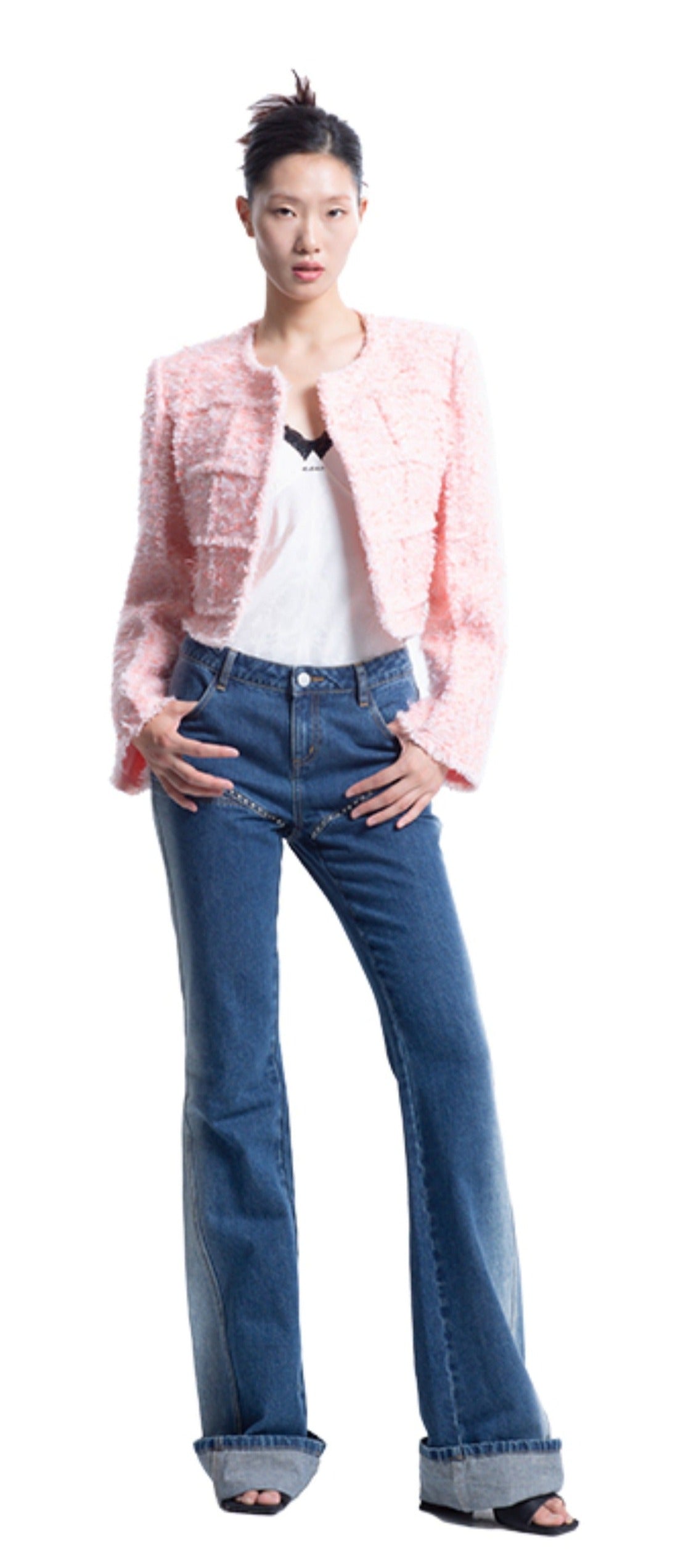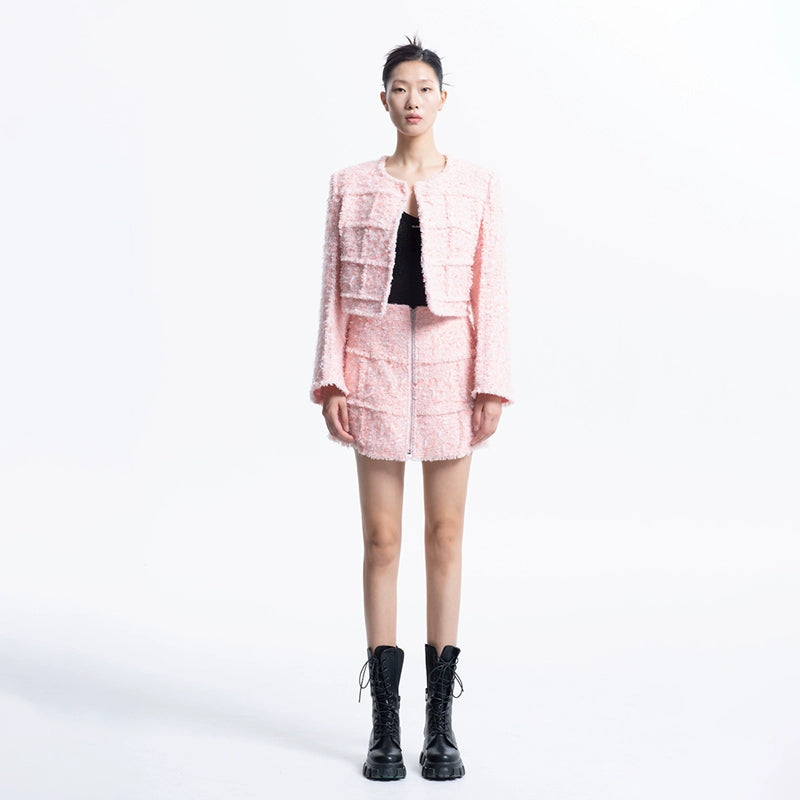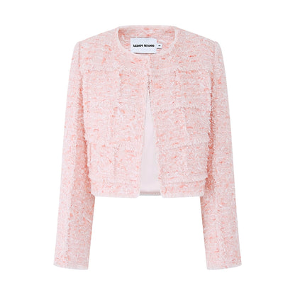 LEDIM W spliced paste;l pink tweed short blazer jacket - Lippi