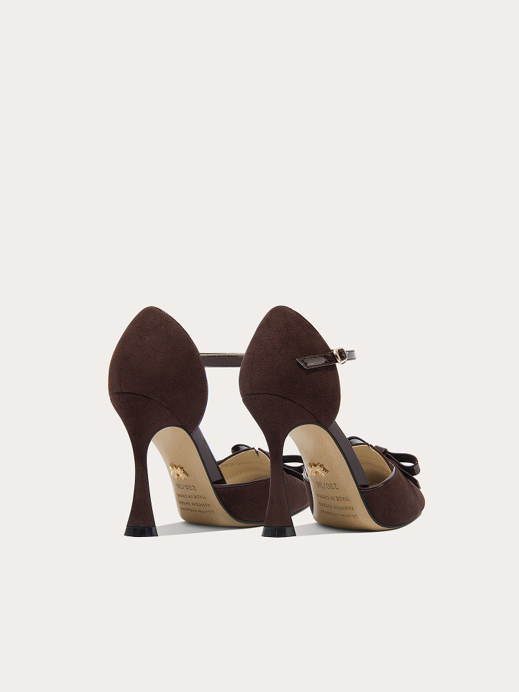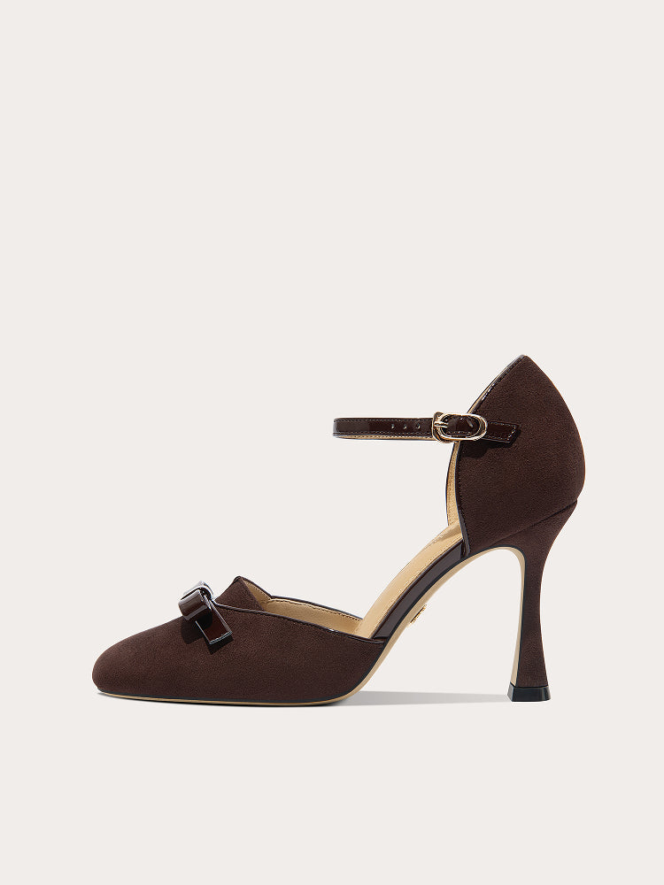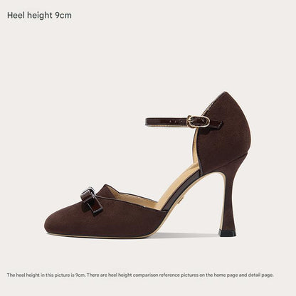 Lily Wei brown vintage bow heel heel sandals square toe heel comfort- ARIA