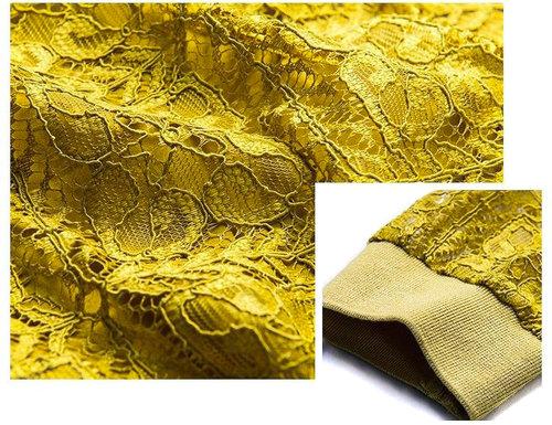 Limited edition muted yellow unique lace vintage pencil lace skirt + quarter sleeve blouse top two piece suit set-Kaliska