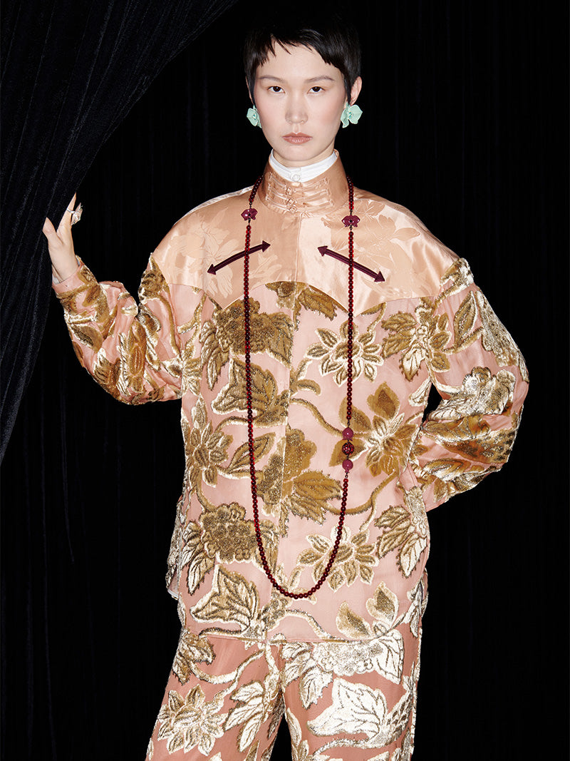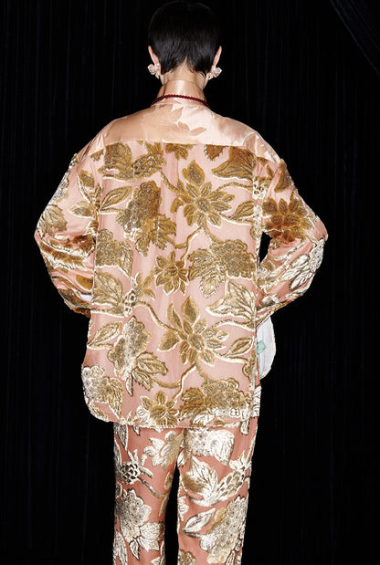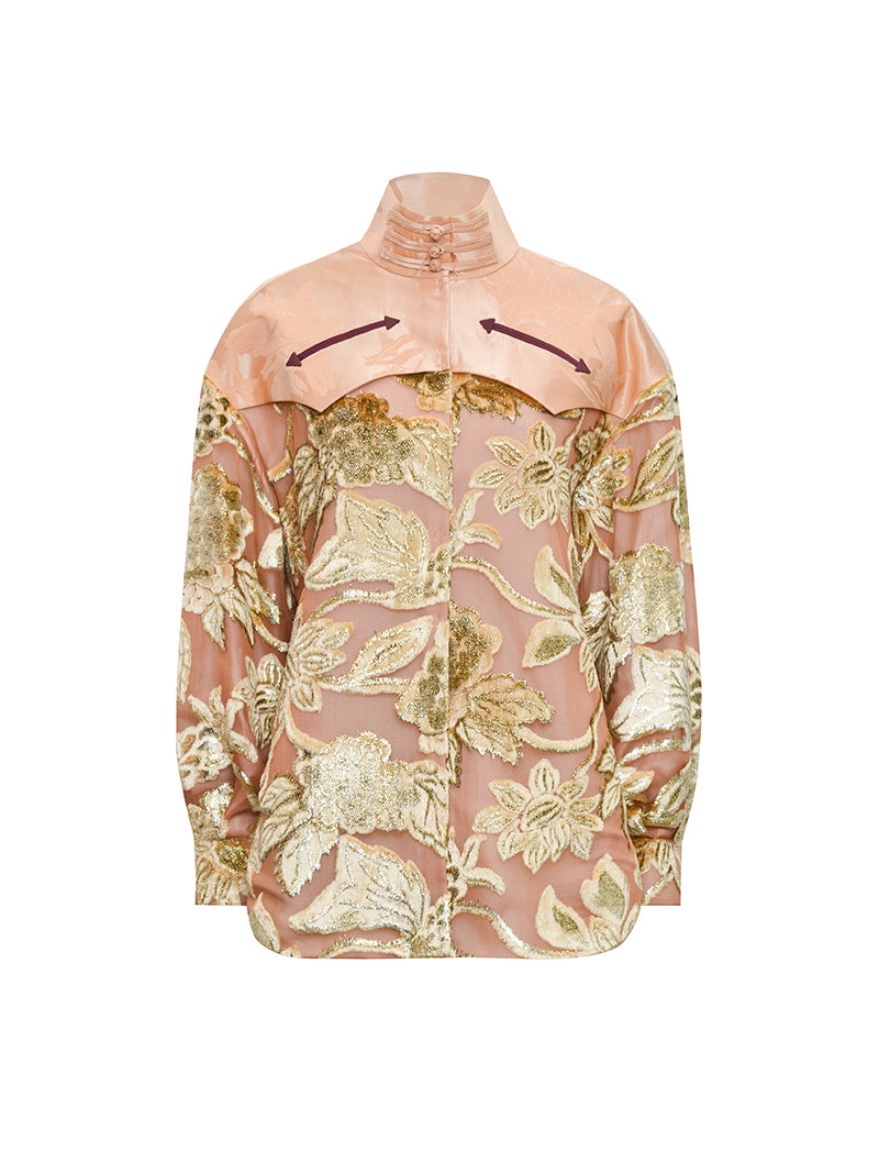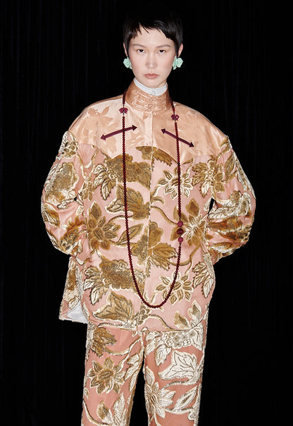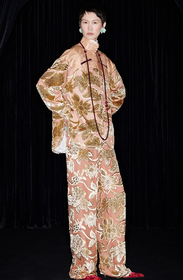 M essential Mackay designer gold stand-up collar shirt pants - ethan.