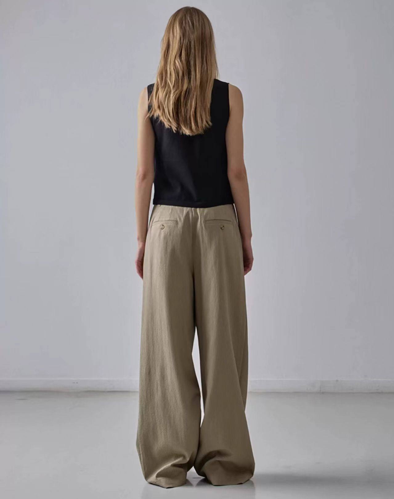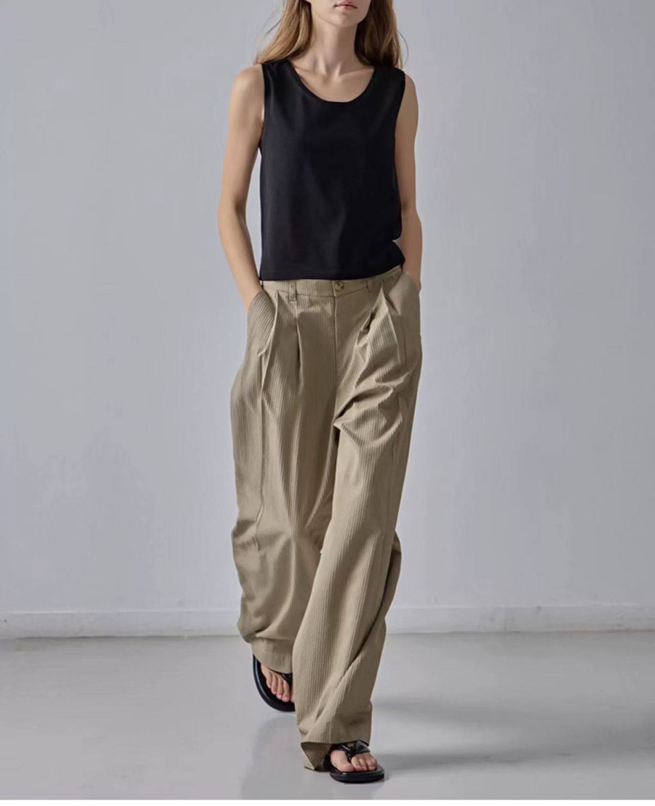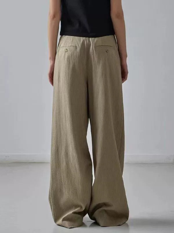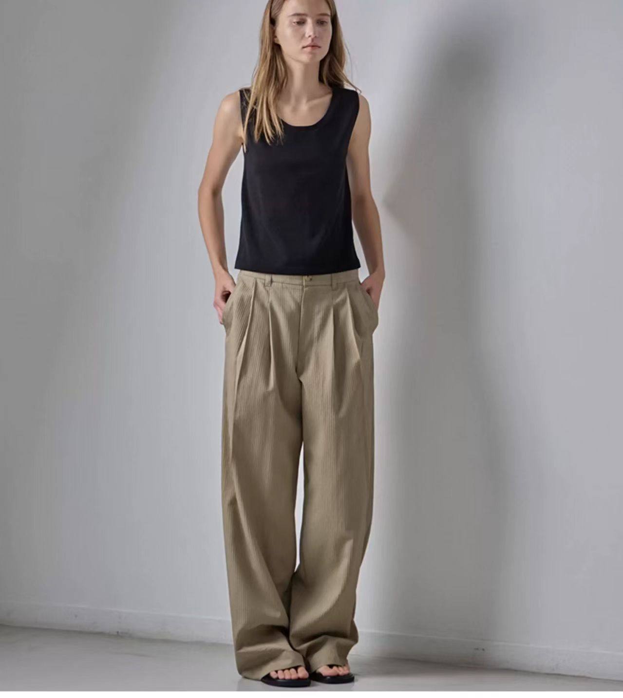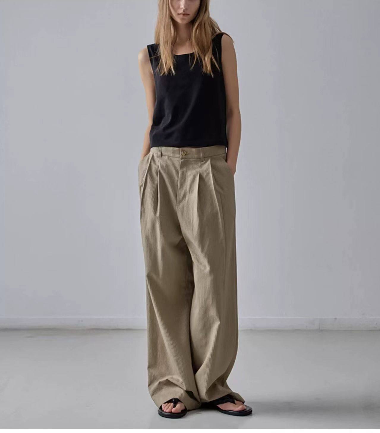 NOTHING WRITTEN Low Classic Casual Pants Women's Summer 2025 New Versatile High-Waisted Slimming Corduroy Straight-leg Wide-leg Pants-KATE