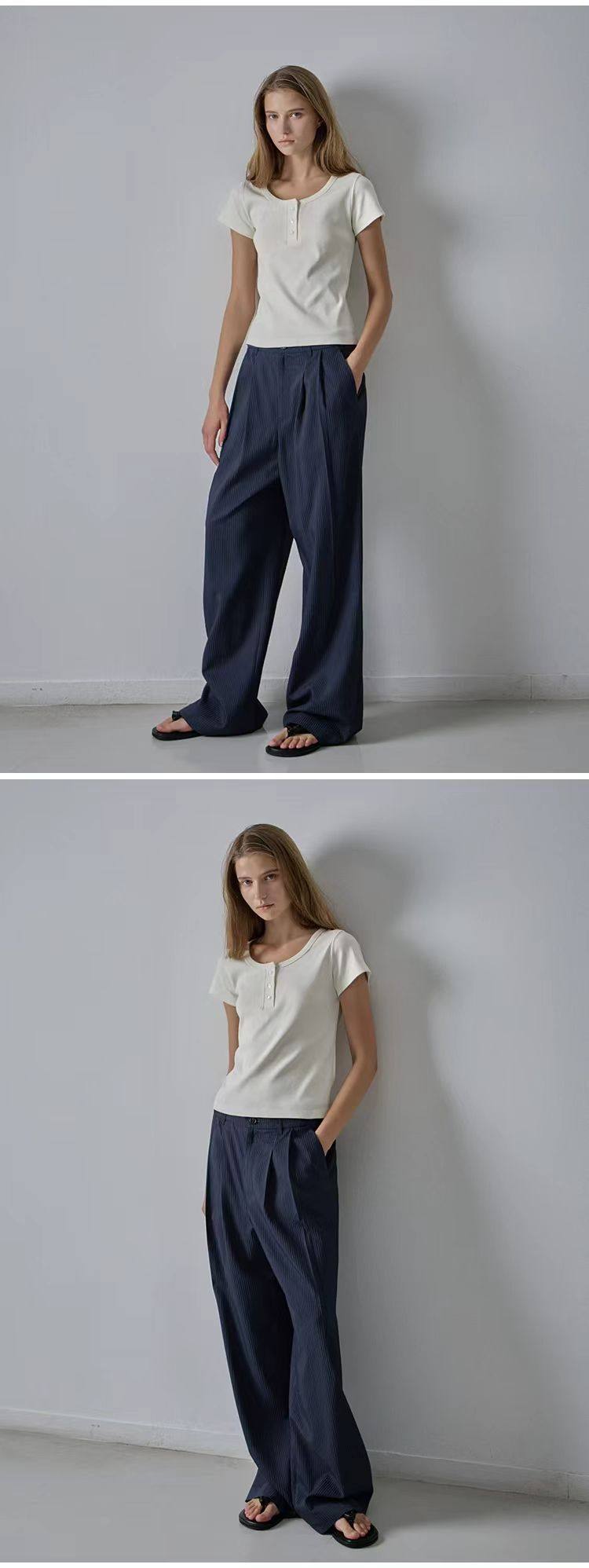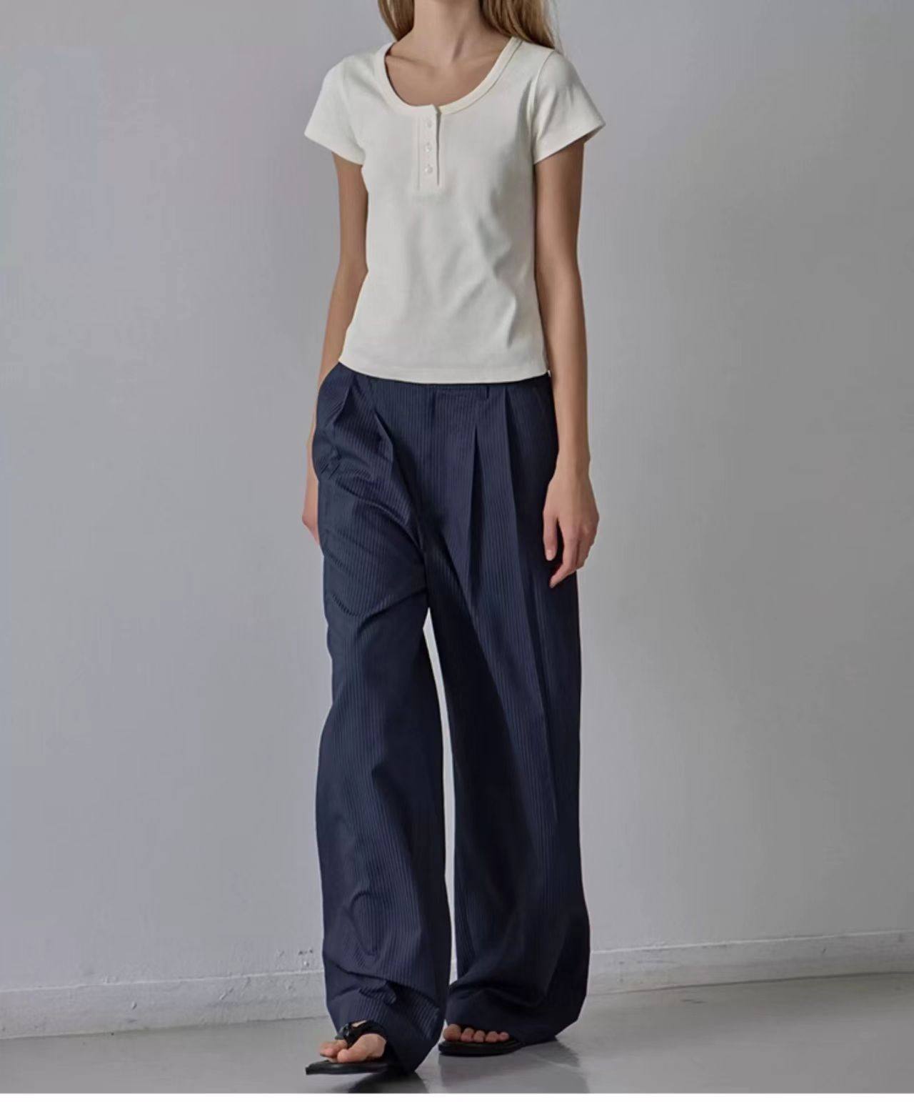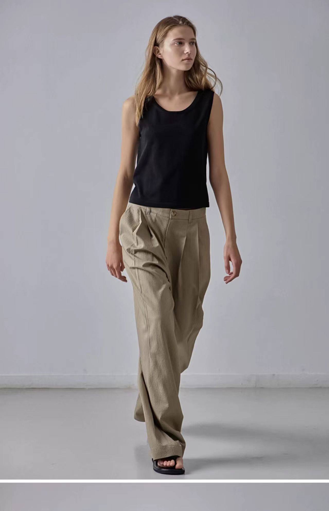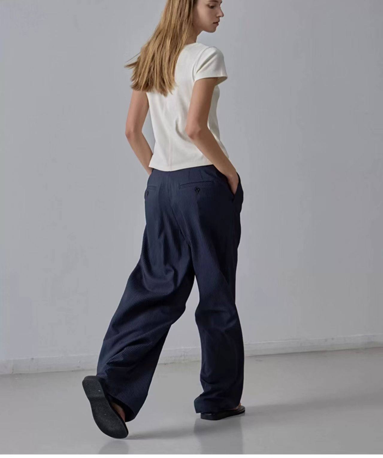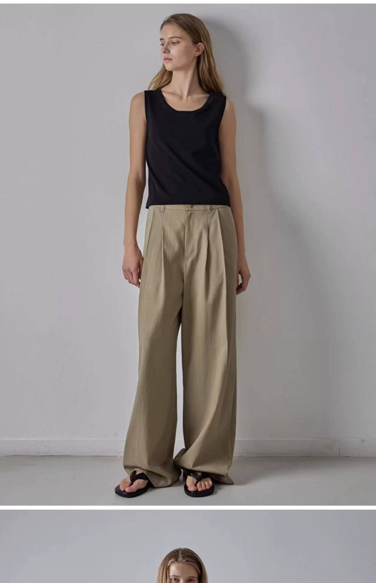 NOTHING WRITTEN Low Classic Casual Pants Women's Summer 2025 New Versatile High-Waisted Slimming Corduroy Straight-leg Wide-leg Pants-KATE