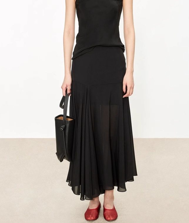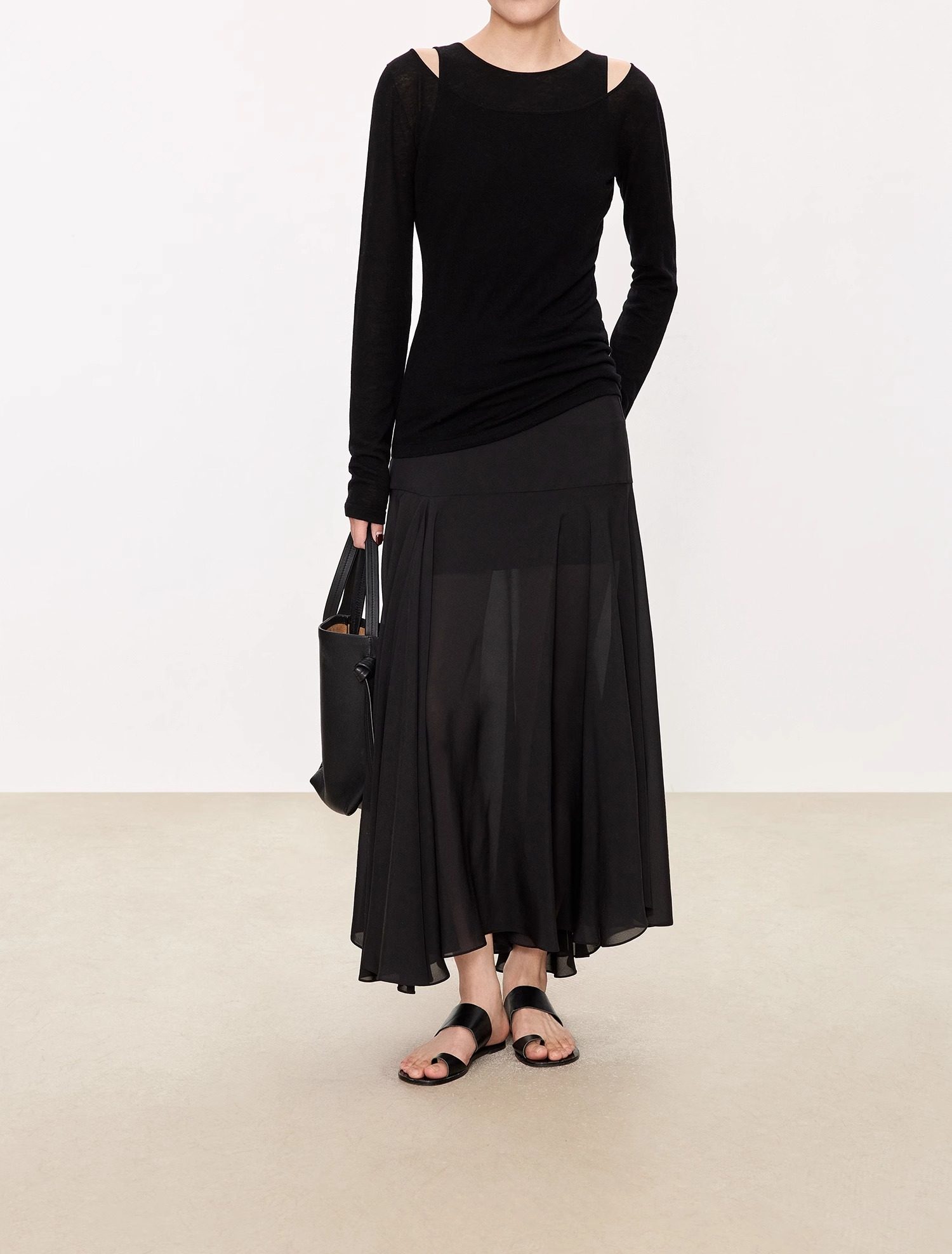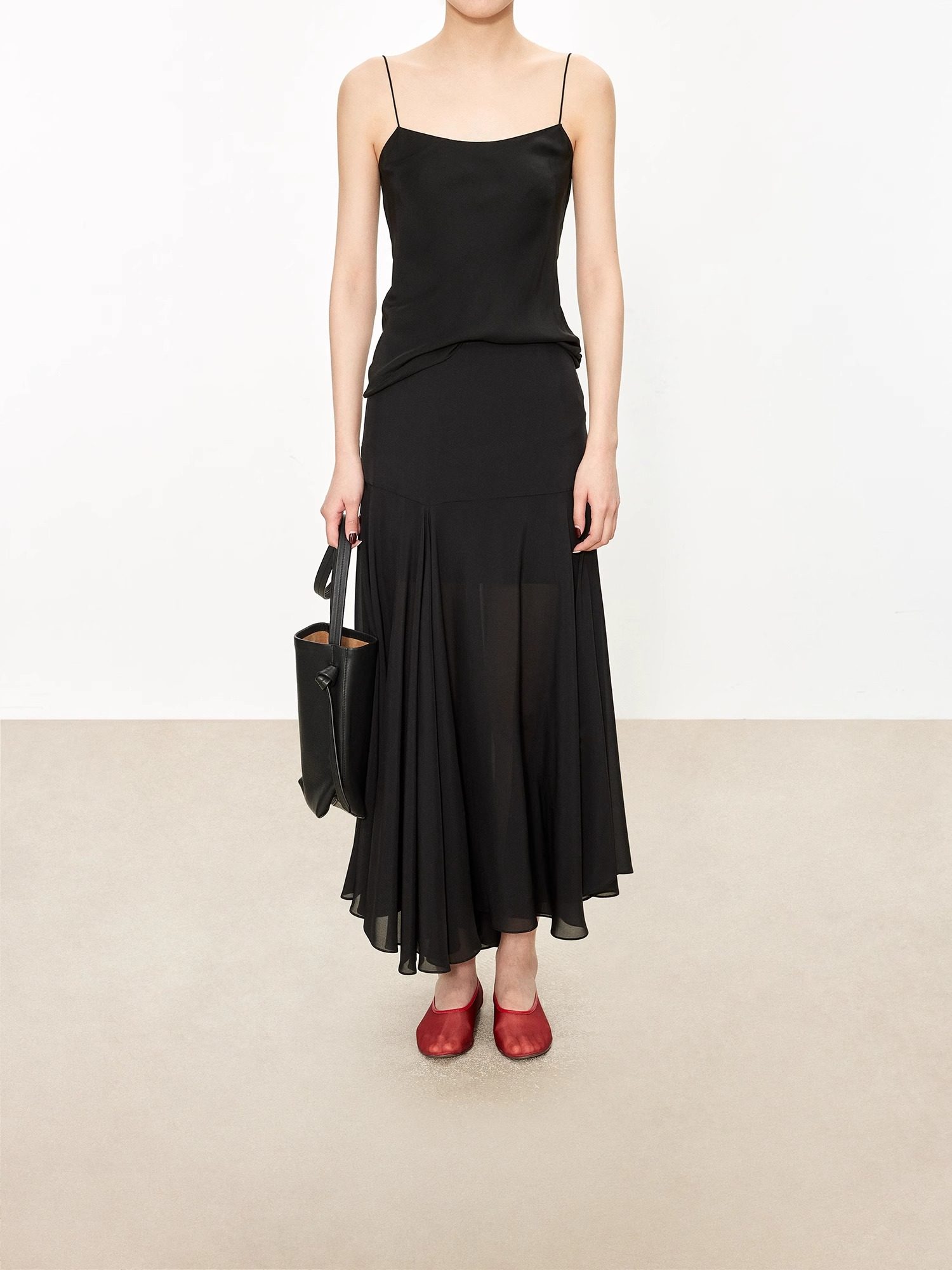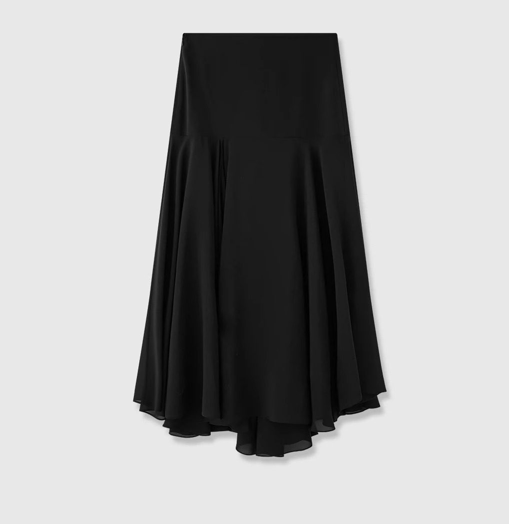 NOTHONG WRITTEN crepe de chine + chiffon silk double-layered 2 pieces Ambience aesthetics stitching irregular skirt-NORA