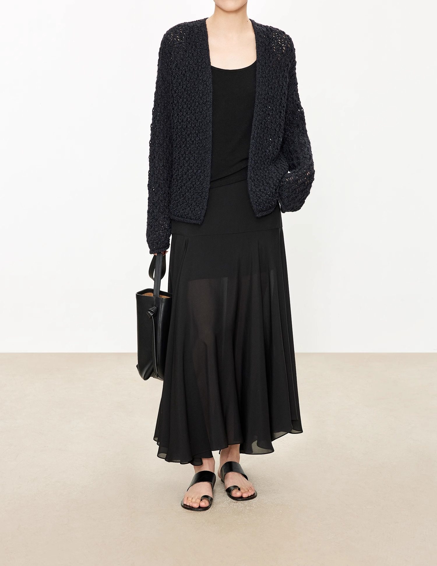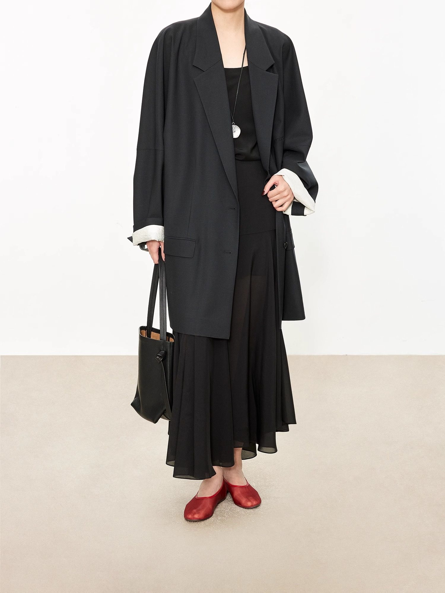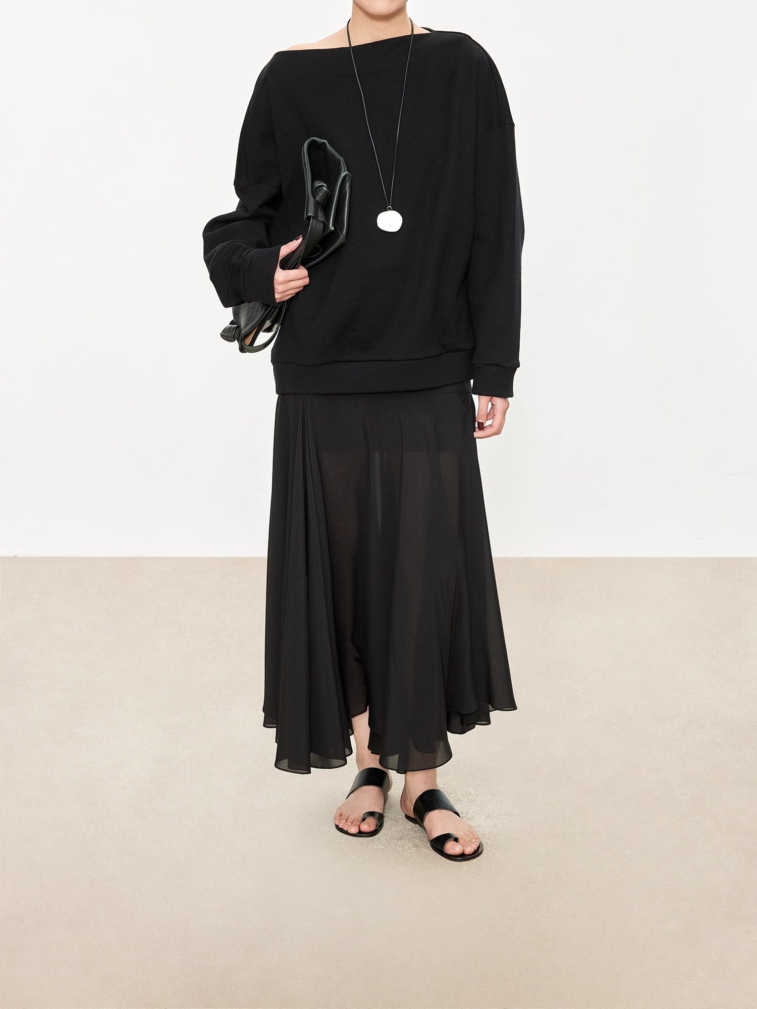 NOTHONG WRITTEN crepe de chine + chiffon silk double-layered 2 pieces Ambience aesthetics stitching irregular skirt-NORA