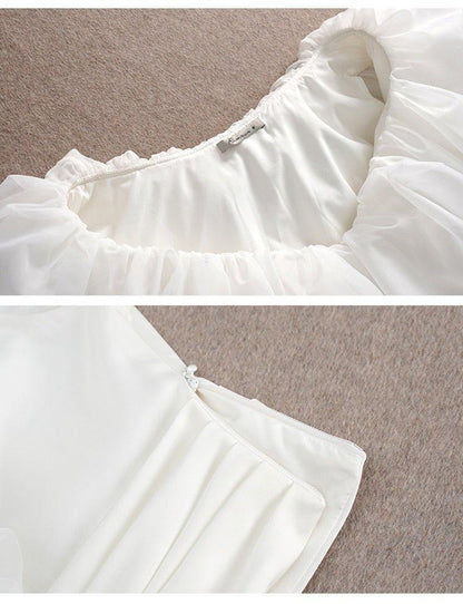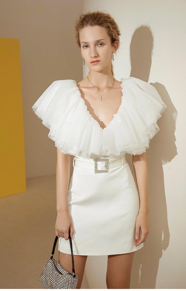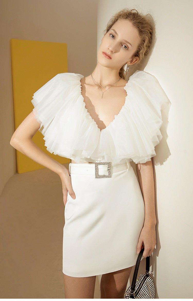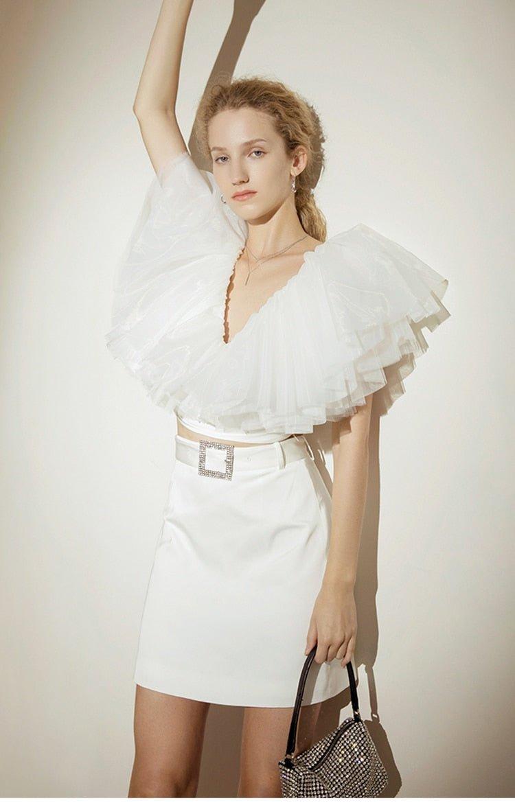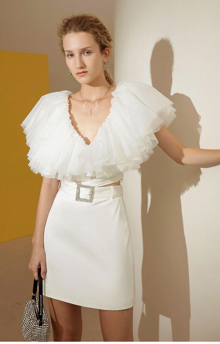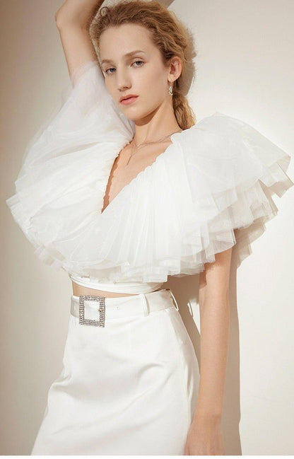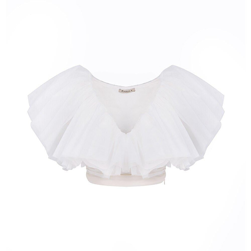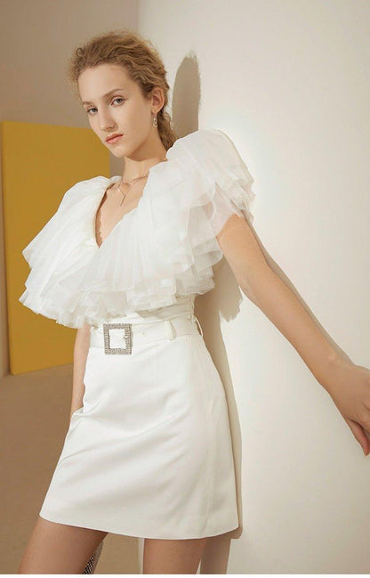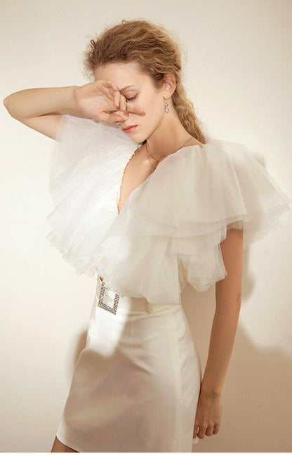 Organza Multilayer cake Ruffle Short Sleeve extravagant cocktail blouse - Esfi
