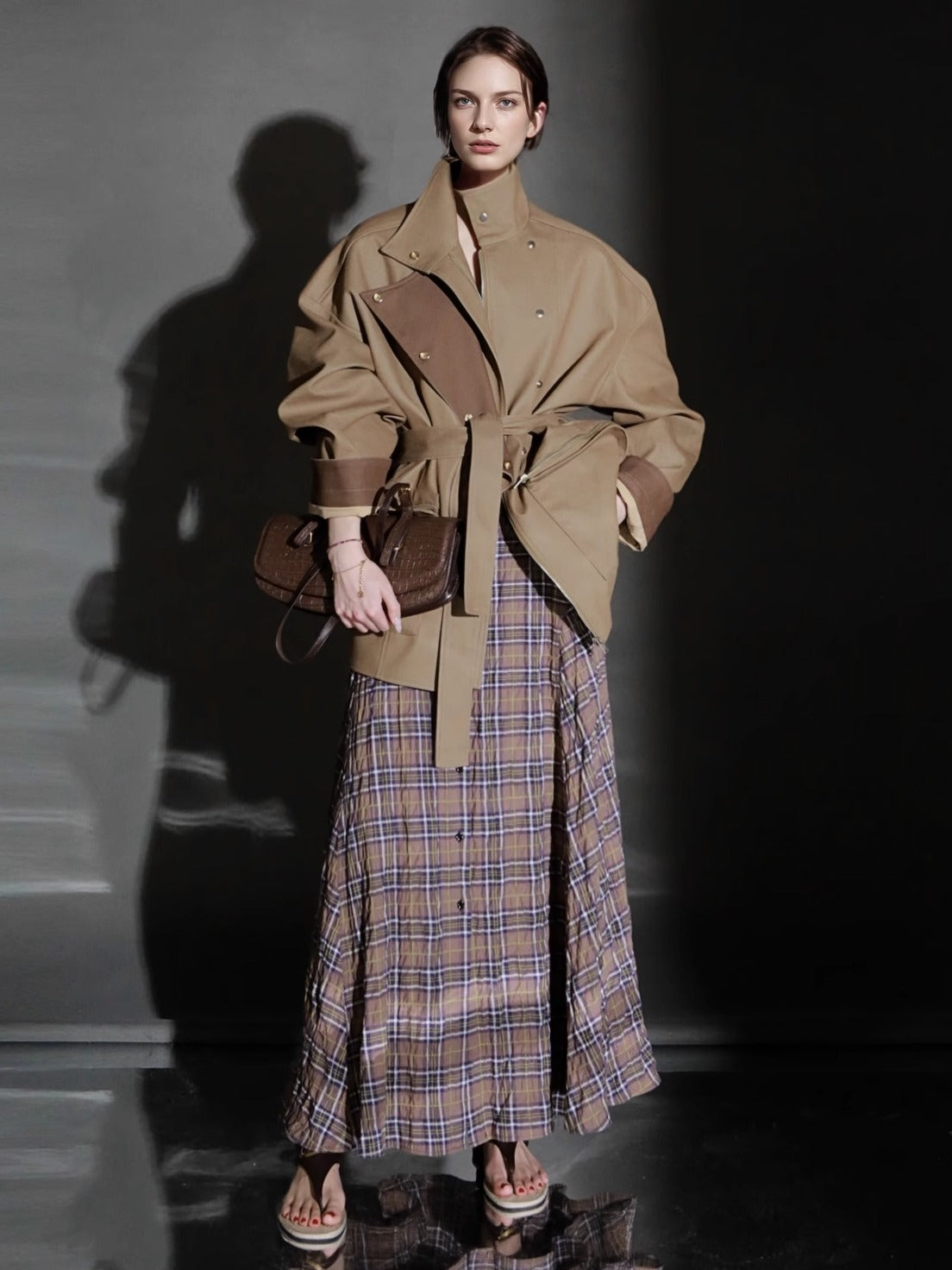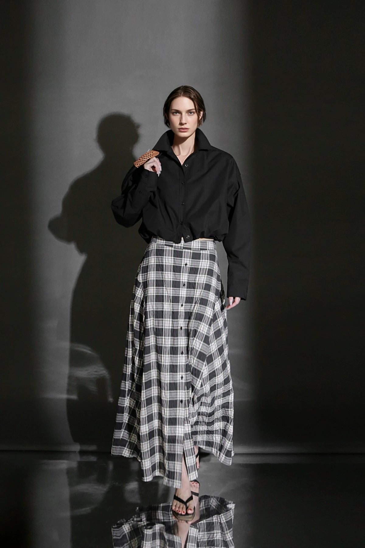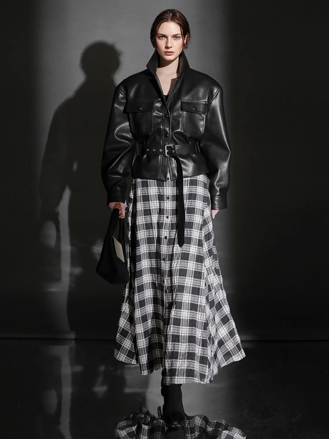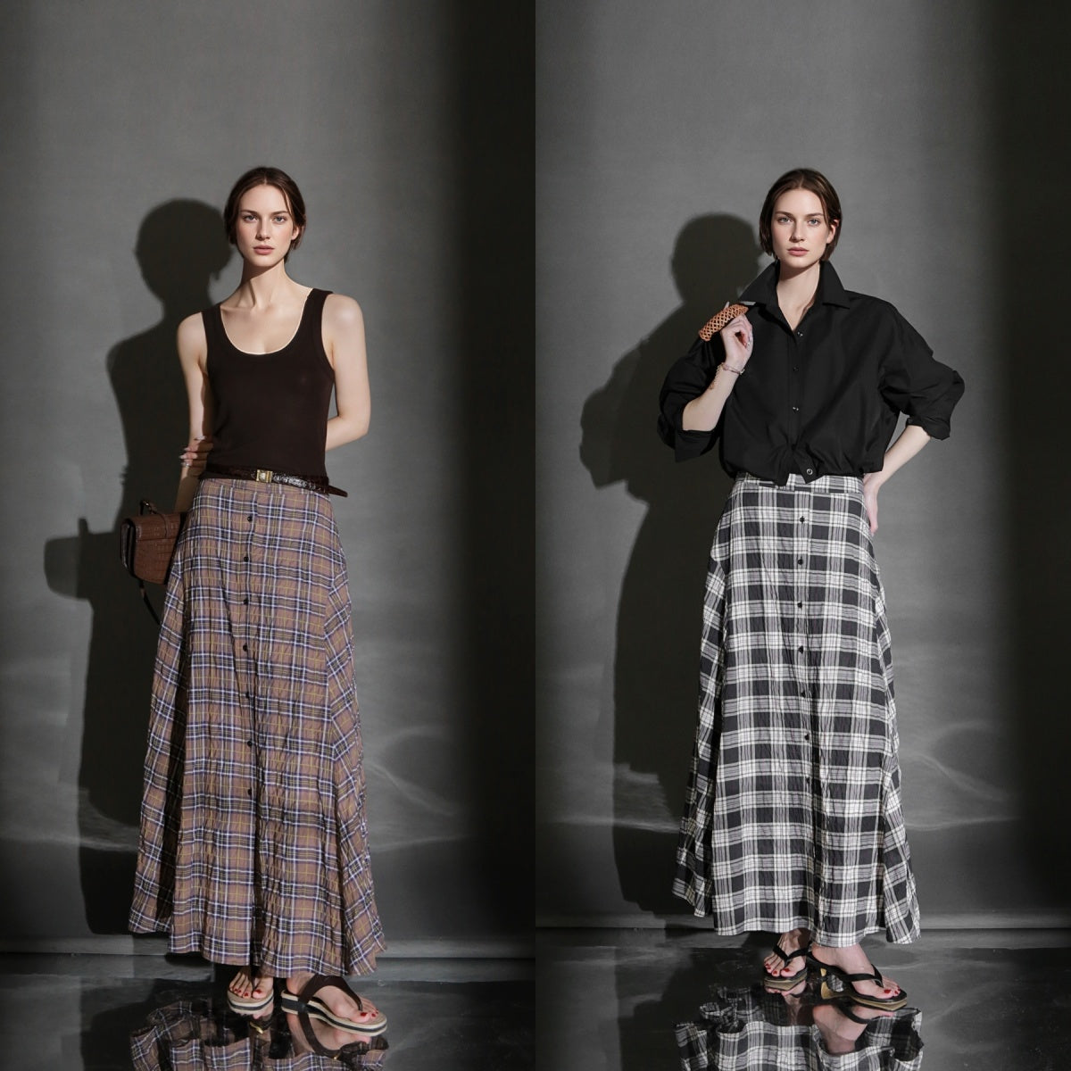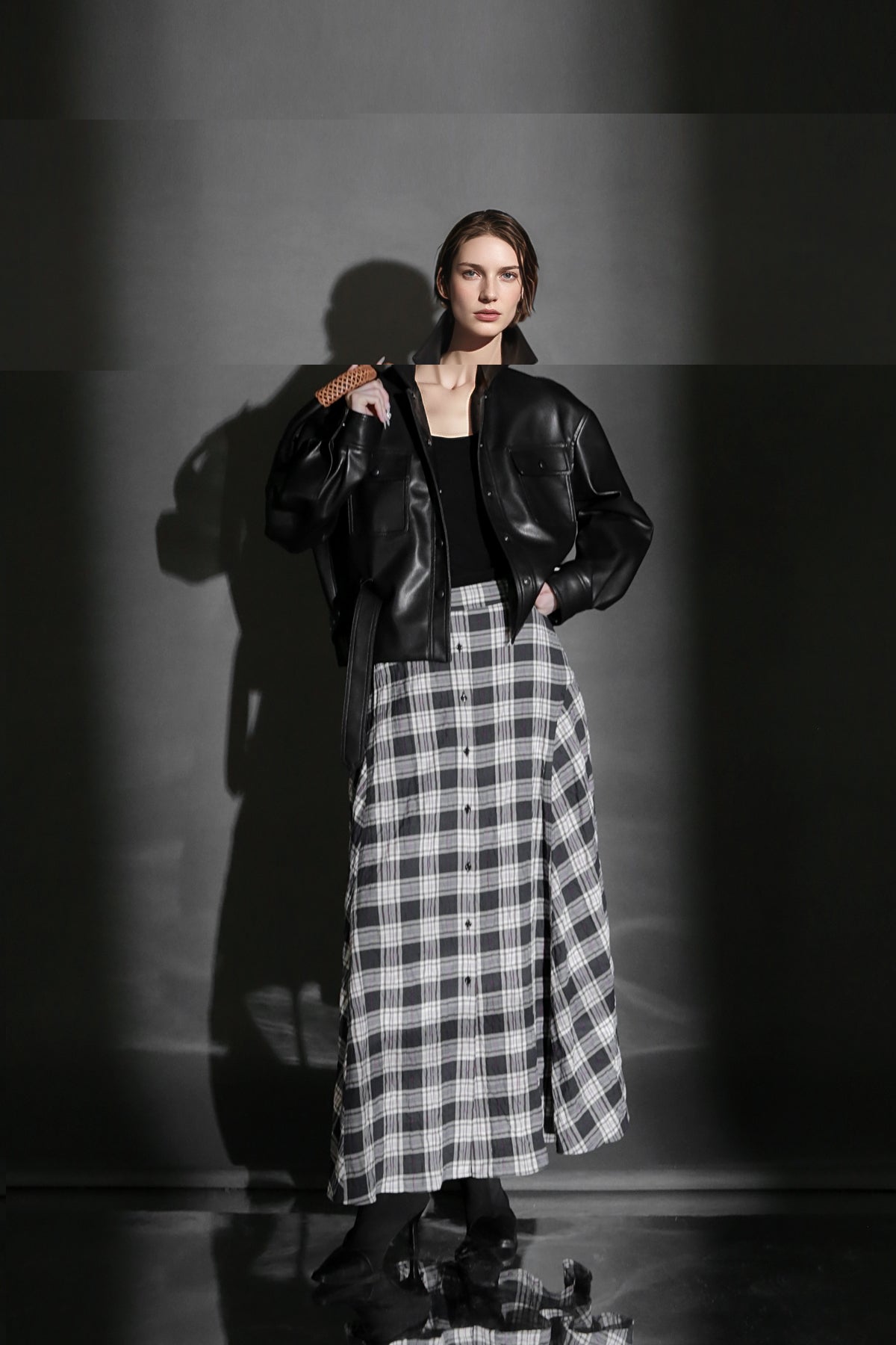 PIAOIN British Style Pattern Design A-Line Women's Fashionable Pleated Skirt -CHARLOTTE