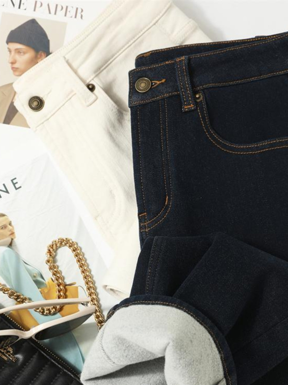 PIAOIN Cashmere Waxy Velvet Thickened Women's Jeans Versatile Slim Pants-CENA