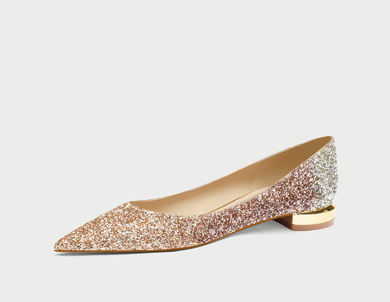 Pjjuu women's ballet flat mid-heel kitten pointed toe wedding bridal pumps Shoes - THRONE