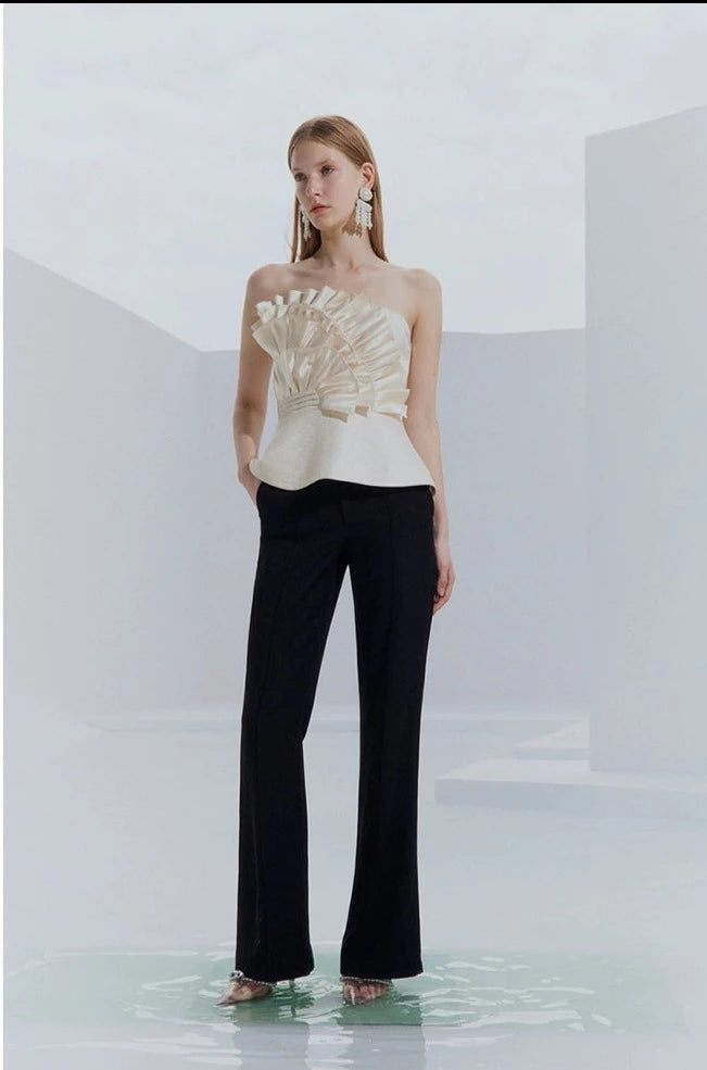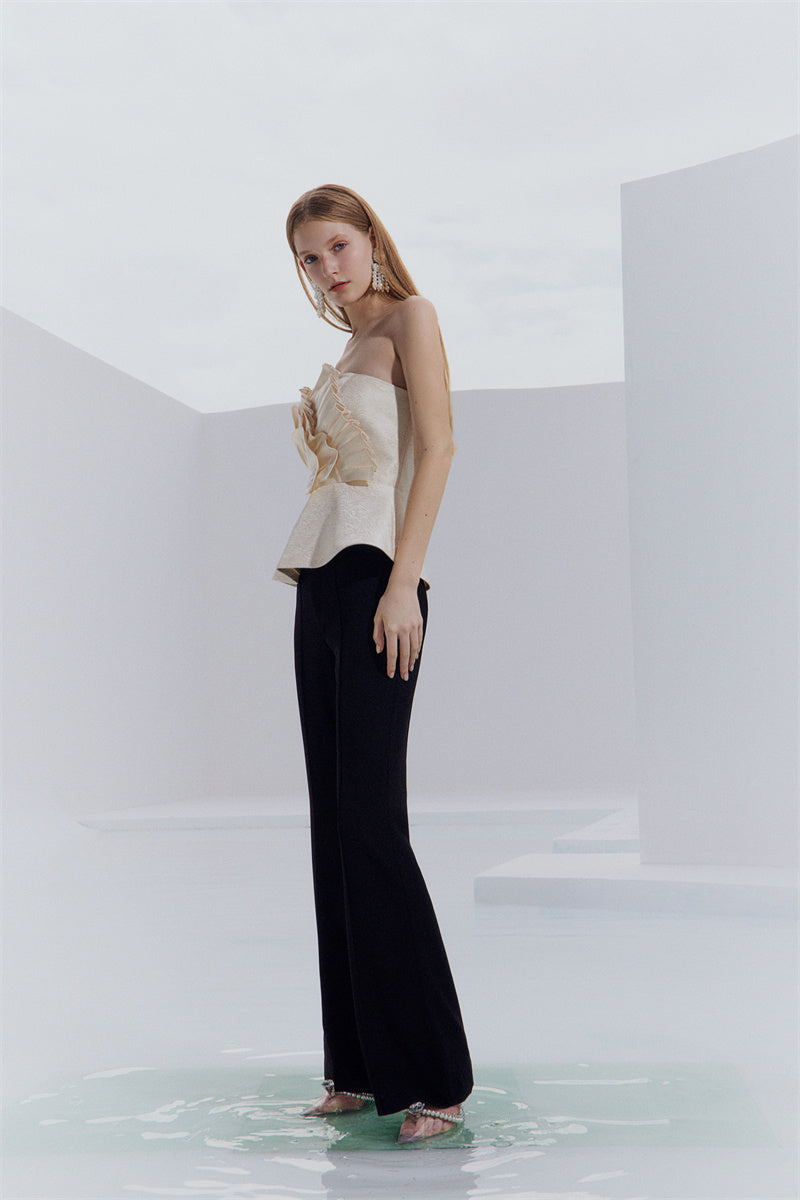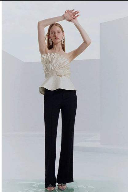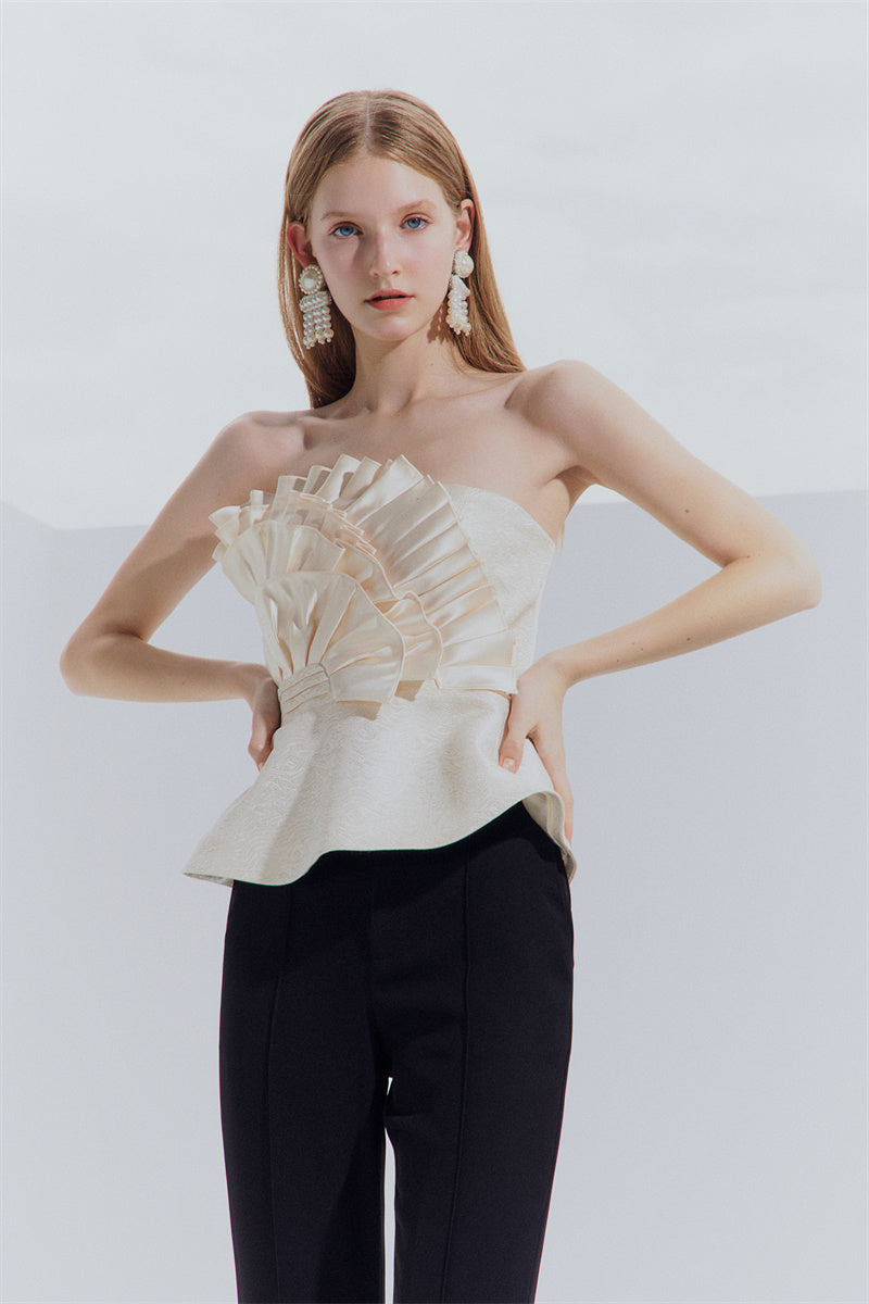 Entertain with an elevated air of sophistication in this Purity high-end light luxury champagne design sense satin bandeau top. In a soft and exclusive champagne gold hue, this exquisite statement piece boasts an effortlessly chic shape and beautiful feminine flair, making it a timeless choice for any special event or season. Unique and unforgettable, this stunning top is sure to become a timeless favorite in any modern woman's wardrobe.