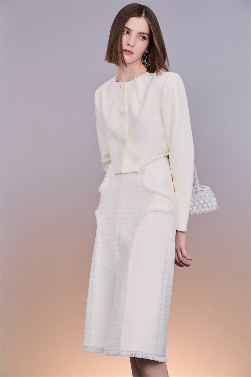 PURITY High-quality off-white tweed fringed coat skirt - Chriselle