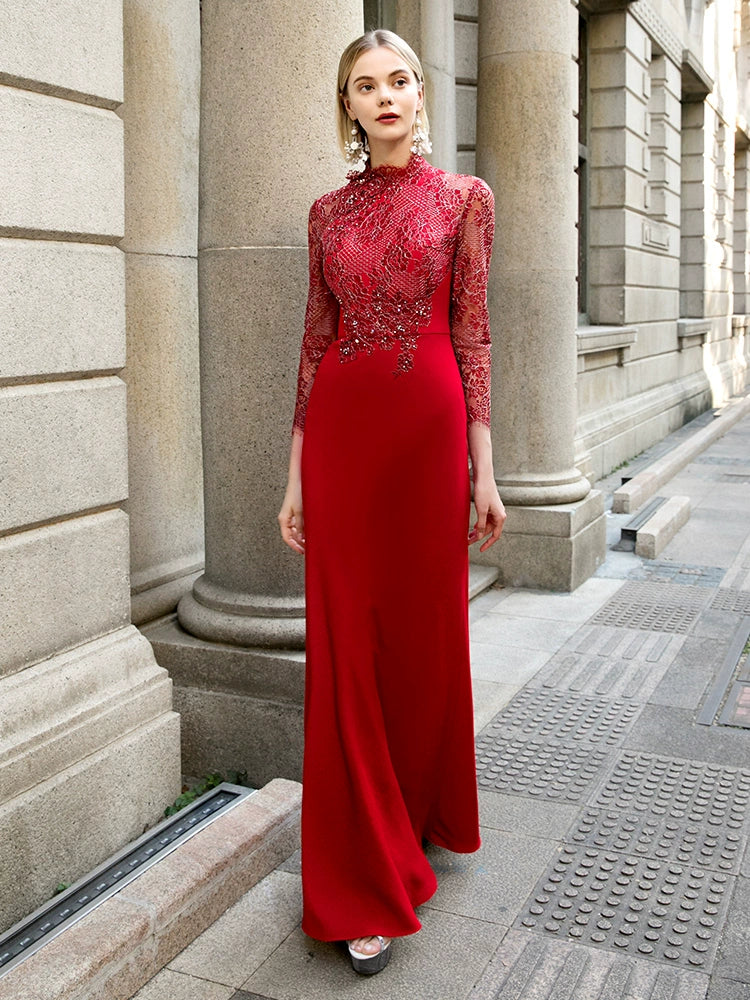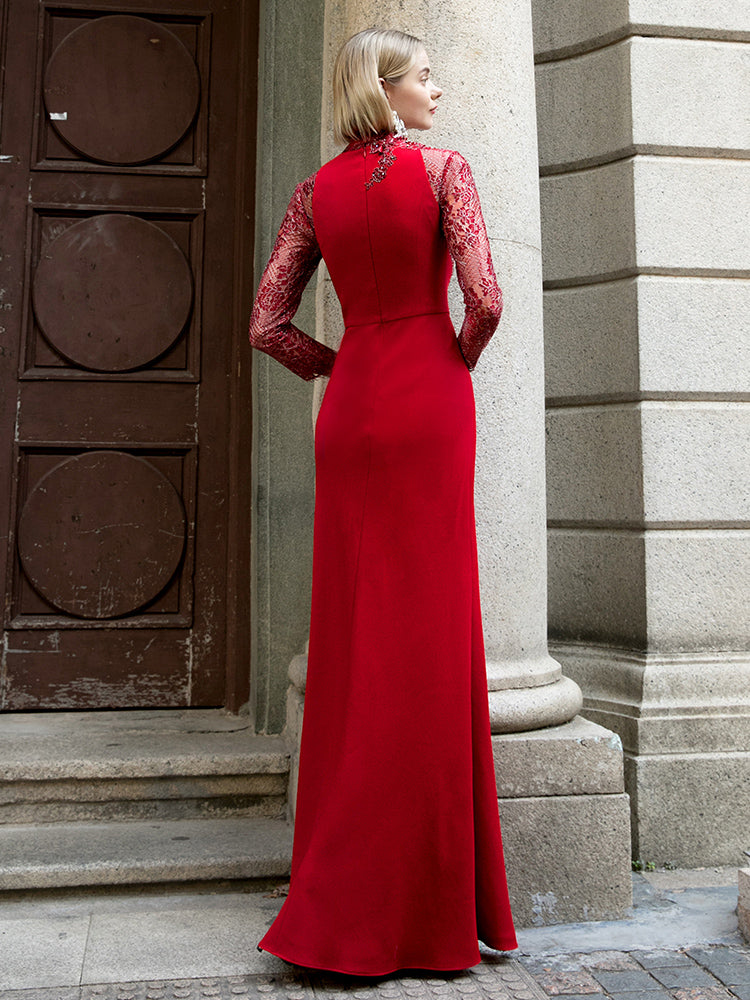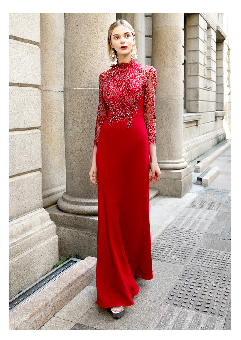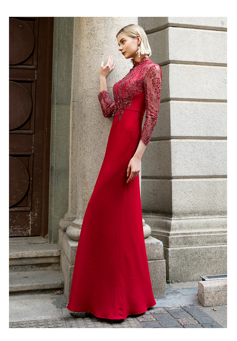 Indulge in the luxury and sophistication of SIDUO's Antoinette wedding dress. With its ankle-length design, long sleeve round neck, and elegant burgundy colour, this dress exudes sensuality and elegance. Perfect for the sophisticated bride looking for a touch of glamour on her special day.